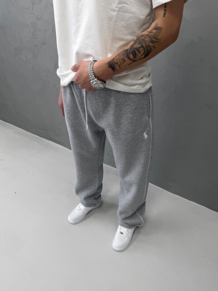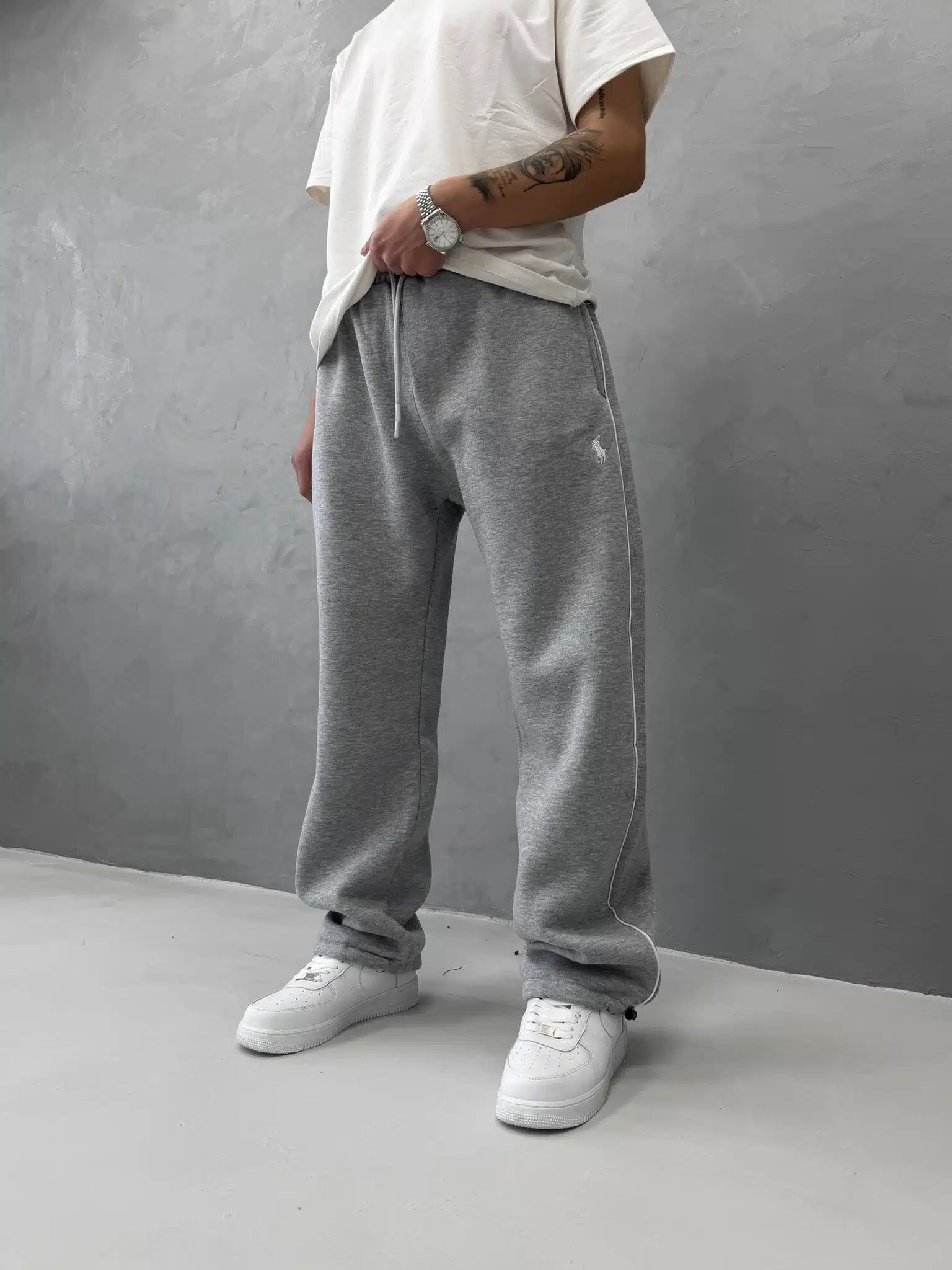 ‘RL’ Nakışlı Çizgili Lastikli Stoper Paça Baggy Eşofman – Gri