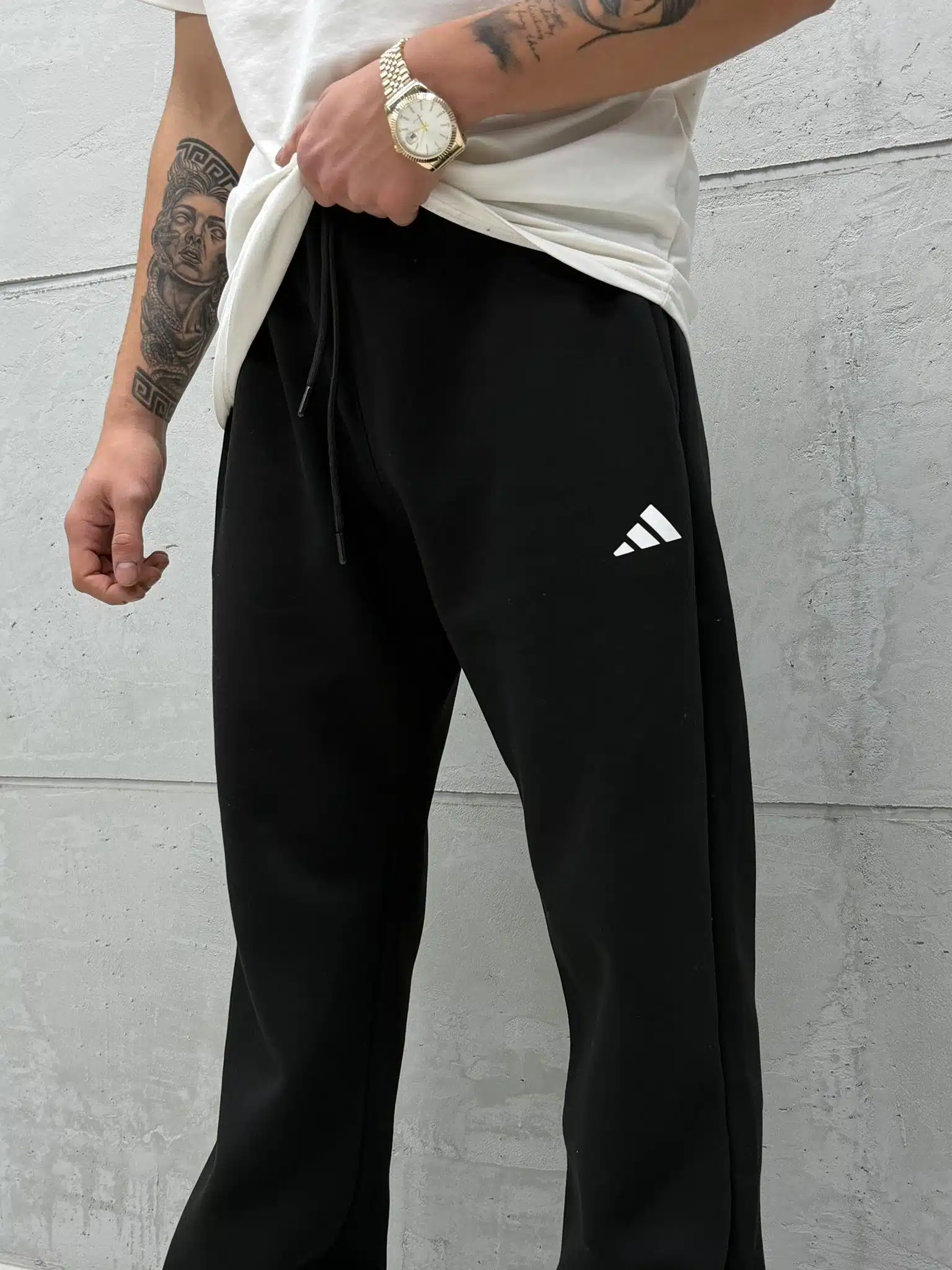 ‘AD’ Baskılı Lastikli Stoper Paça Baggy Eşofman – Siyah