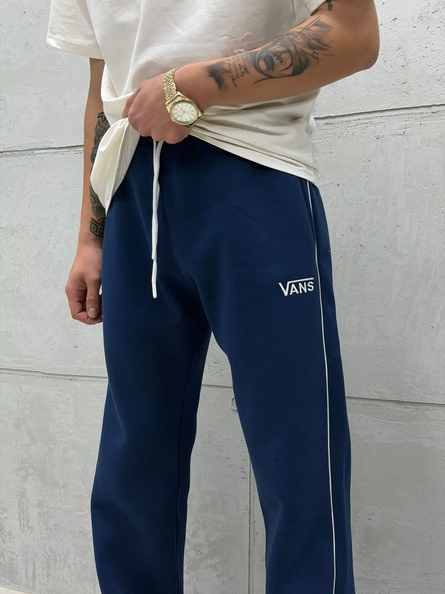 Anasayfa » Mağaza » ‘VNS’ Nakışlı Çizgili Lastikli Stoper Paça Baggy Eşofman – İndigo