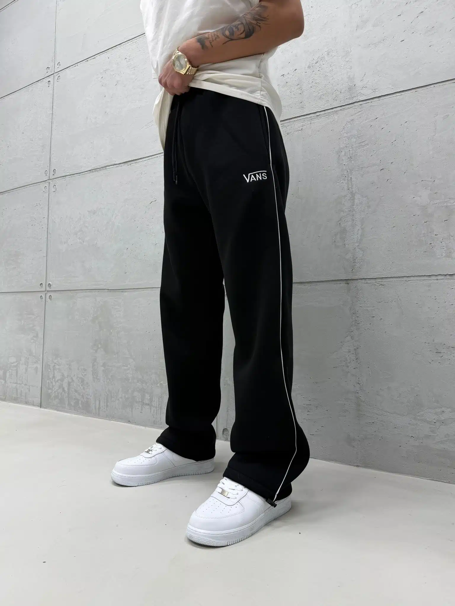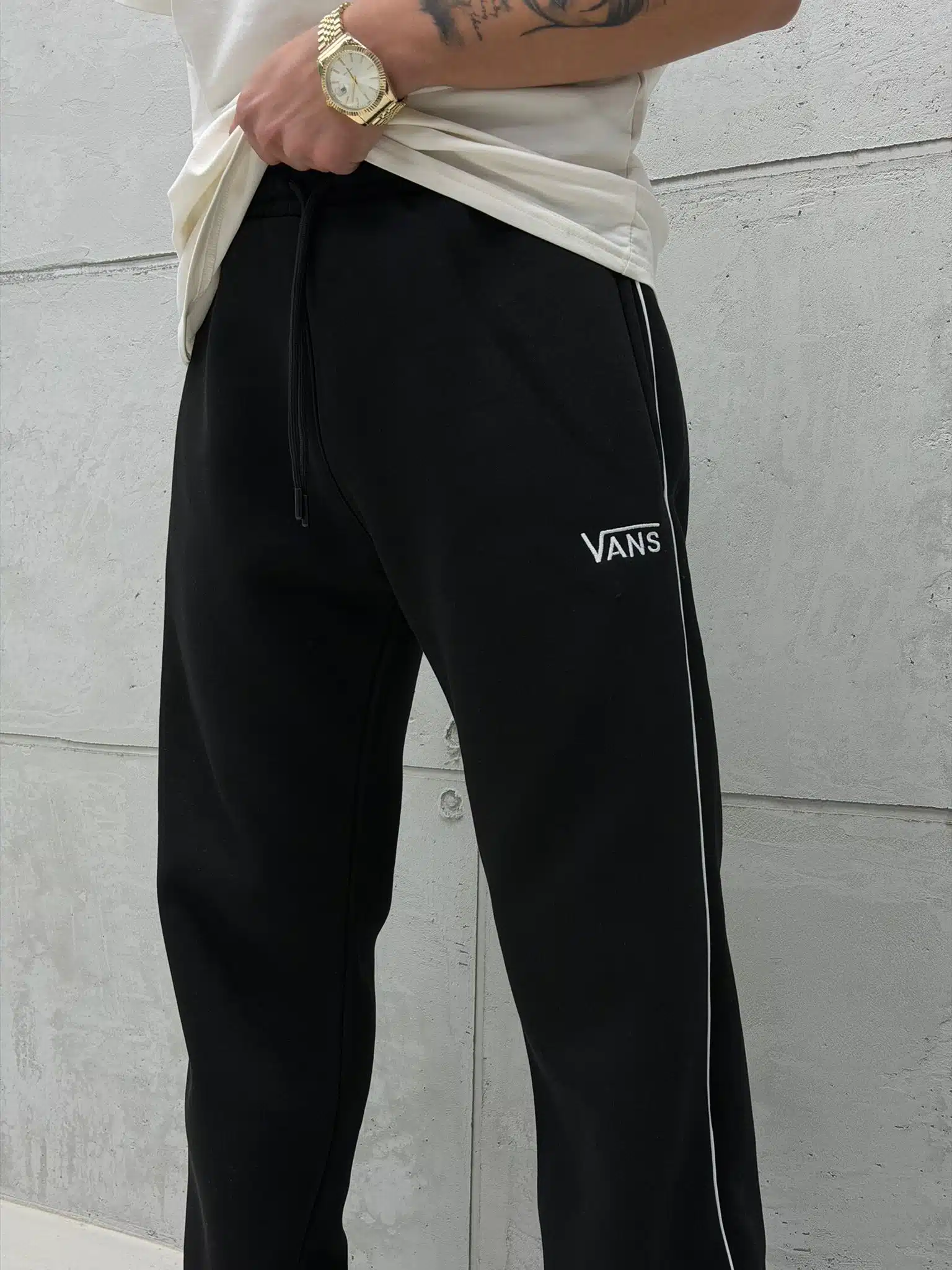 Anasayfa » Mağaza » ‘VNS’ Nakışlı Çizgili Lastikli Stoper Paça Baggy Eşofman – Siyah