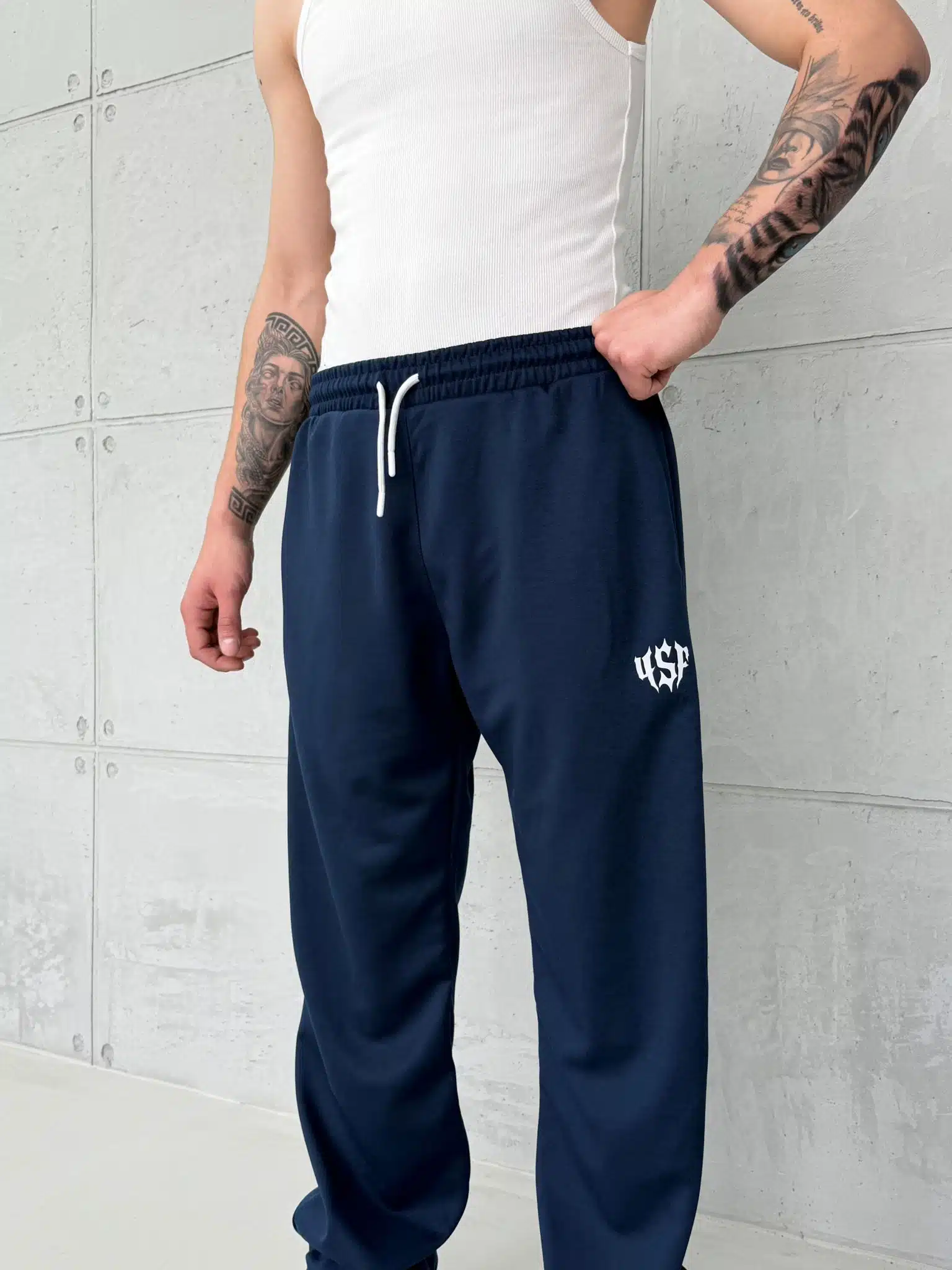 4SF Baskılı Stoper Paça Baggy Eşofman – İndigo