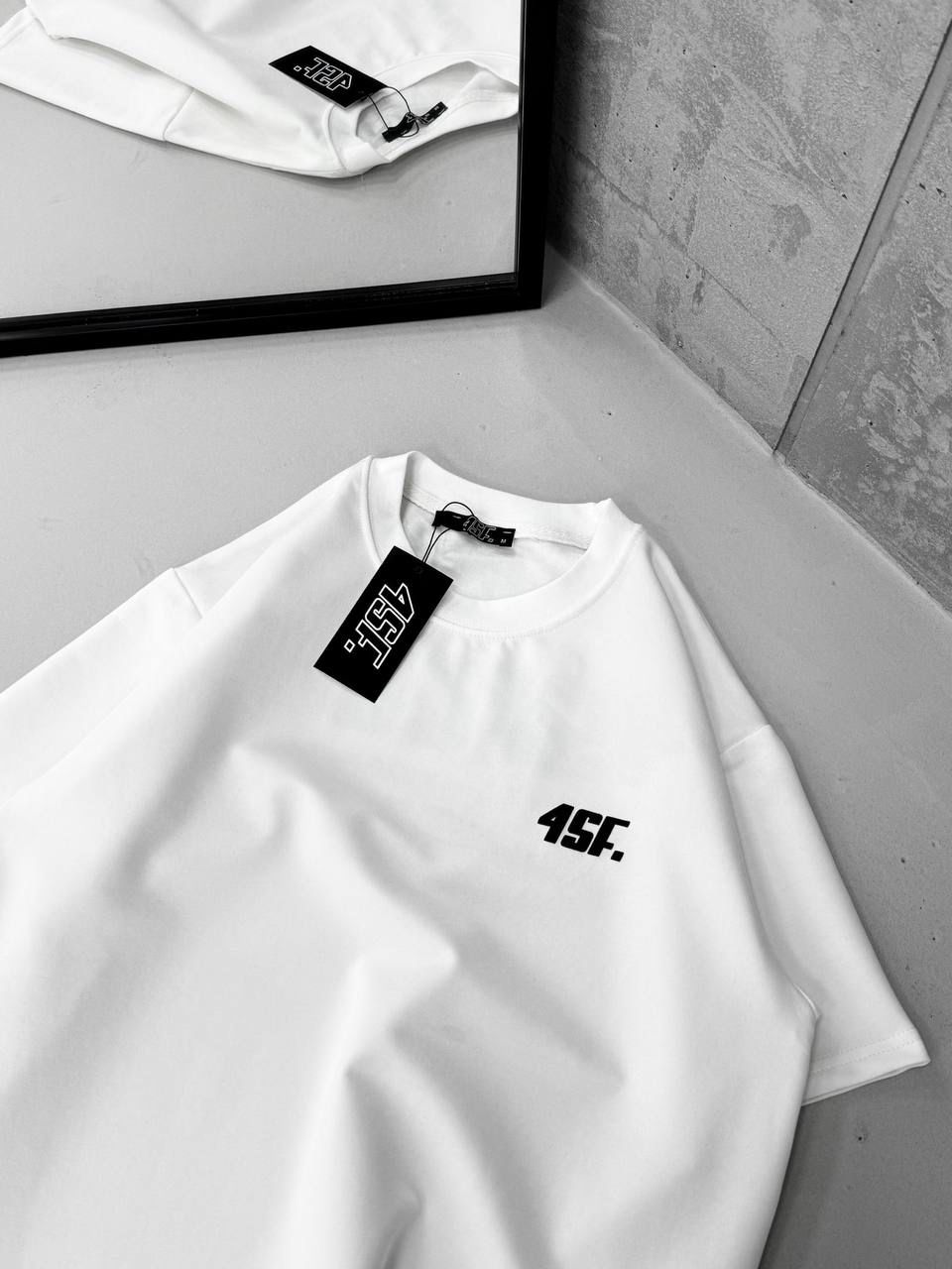 4SFCULT. Sırt Kabartma Baskı Detaylı Bisiklet Yaka Tshirt – Beyaz