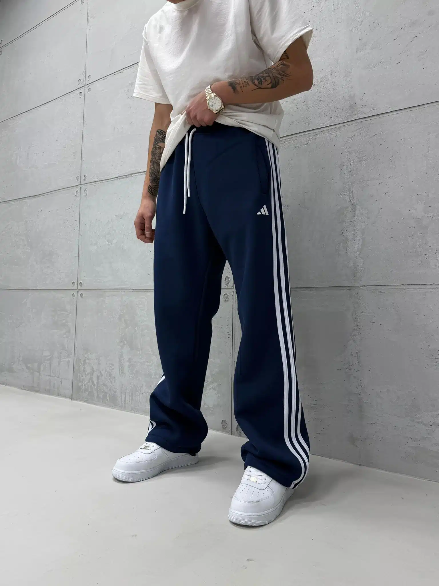 ‘AD’ 3 Şeritli Lastikli Stoper Paça Baggy Eşofman – İndigo