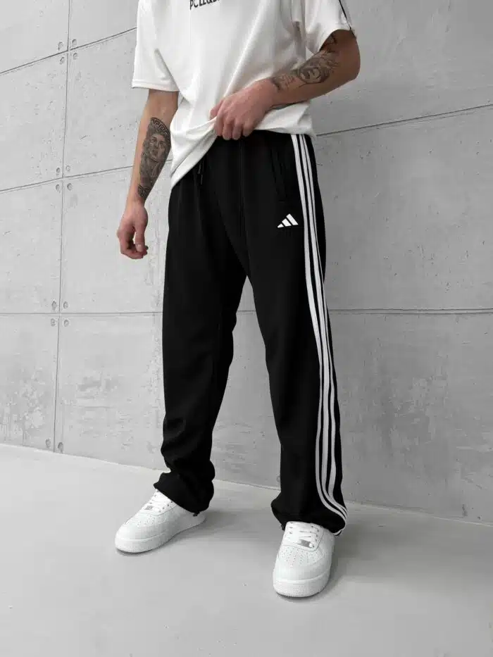 ‘AD’ 3 Şeritli Lastikli Stoper Paça Baggy Eşofman – Siyah