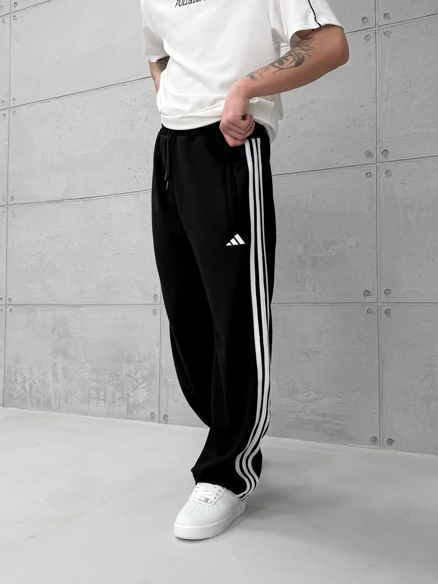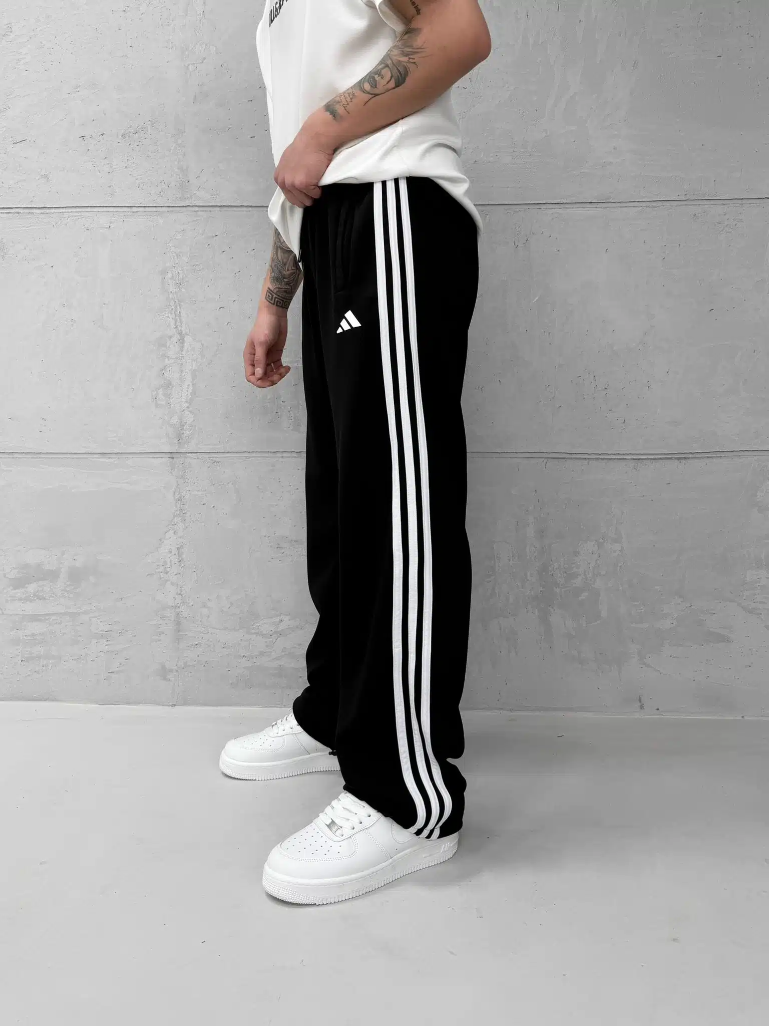 Anasayfa » Mağaza » ‘AD’ 3 Şeritli Lastikli Stoper Paça Baggy Eşofman – Siyah