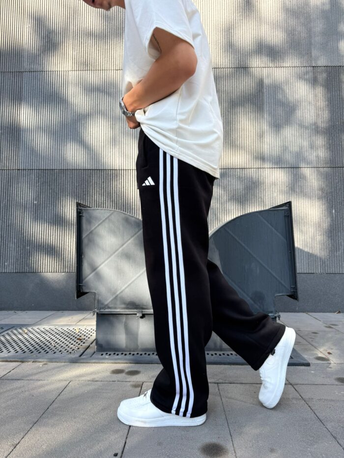 ‘AD’ 3 Şeritli Lastikli Stoper Paça Baggy Eşofman – Siyah