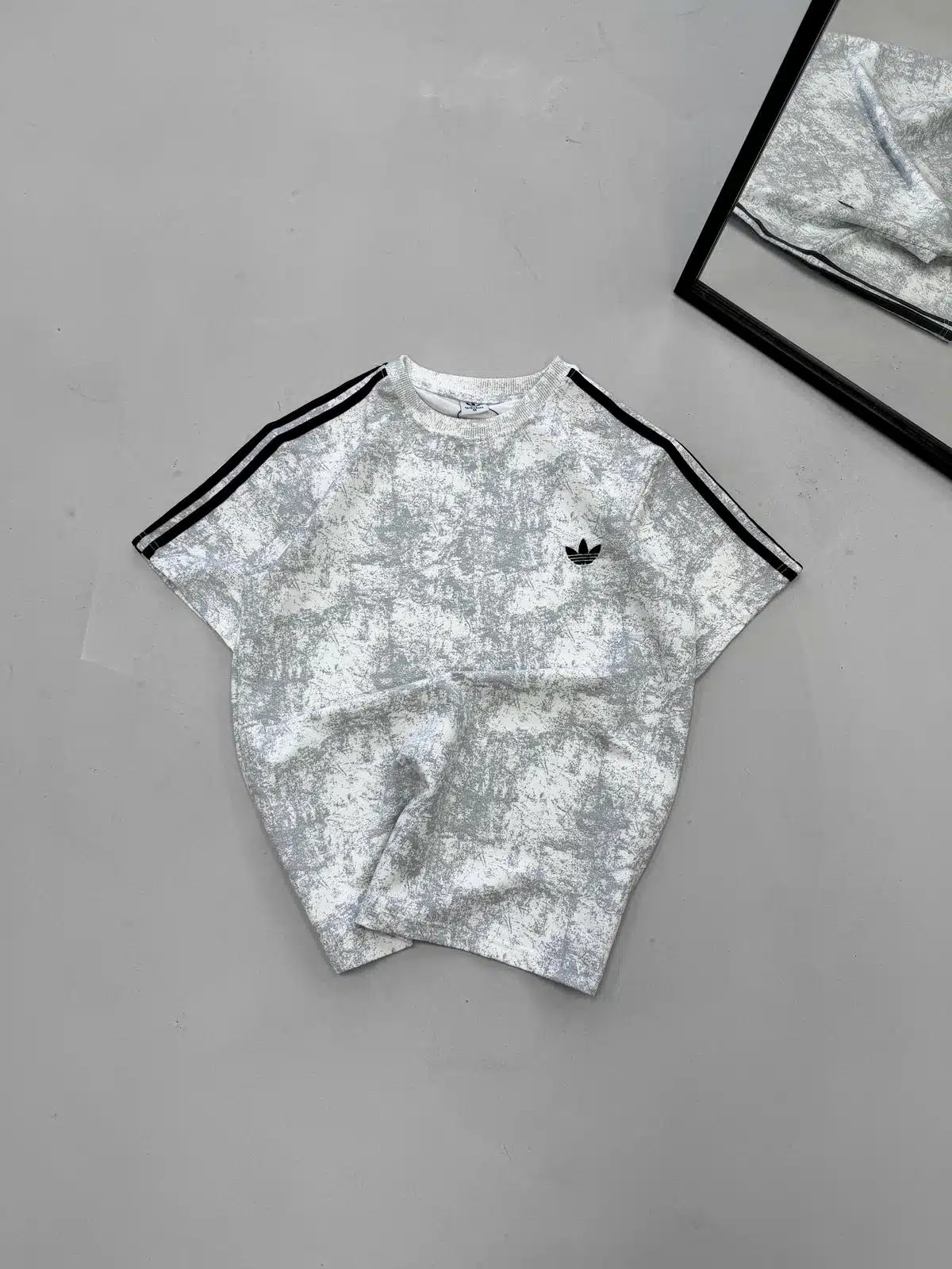 AD 3 Şeritli Yıkamalı Tshirt-Beyaz