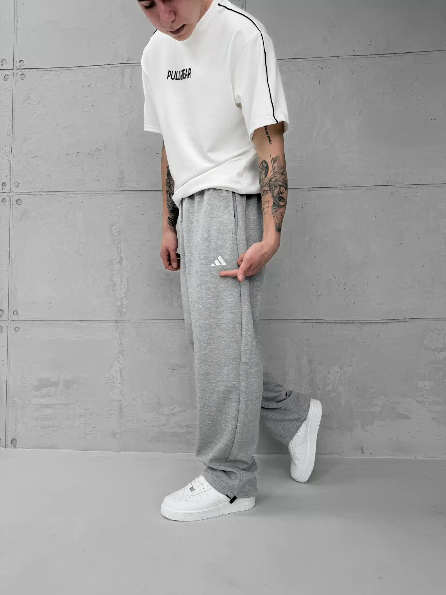 ‘AD’ Baskılı Lastikli Stoper Paça Baggy Eşofman – Gri