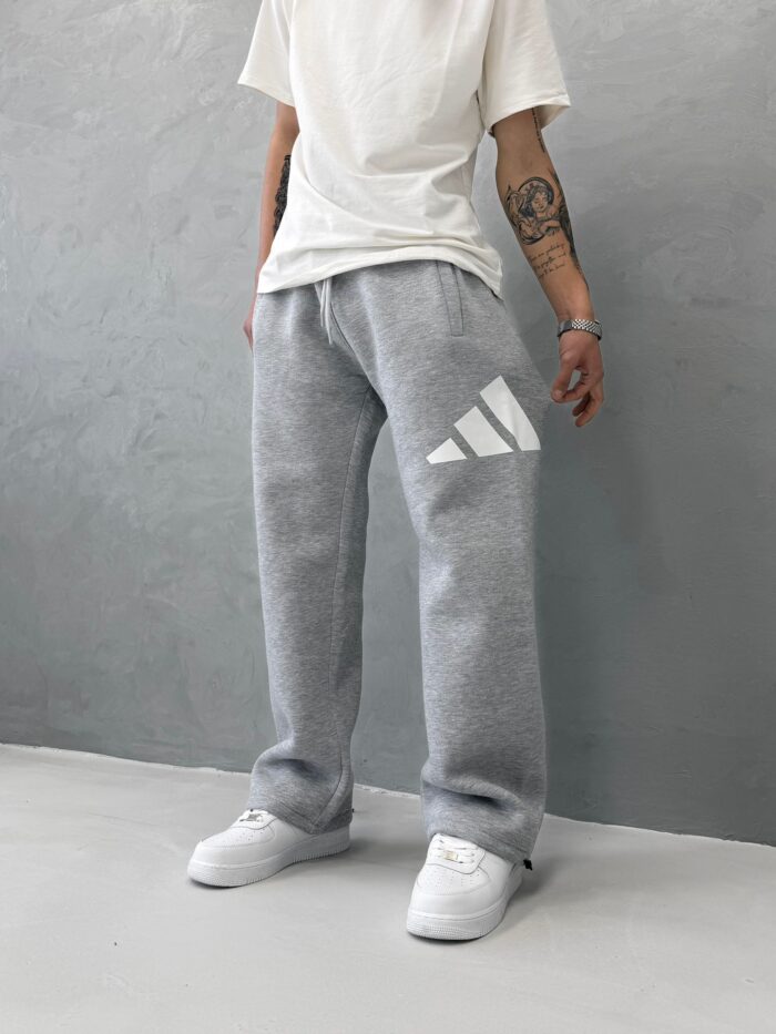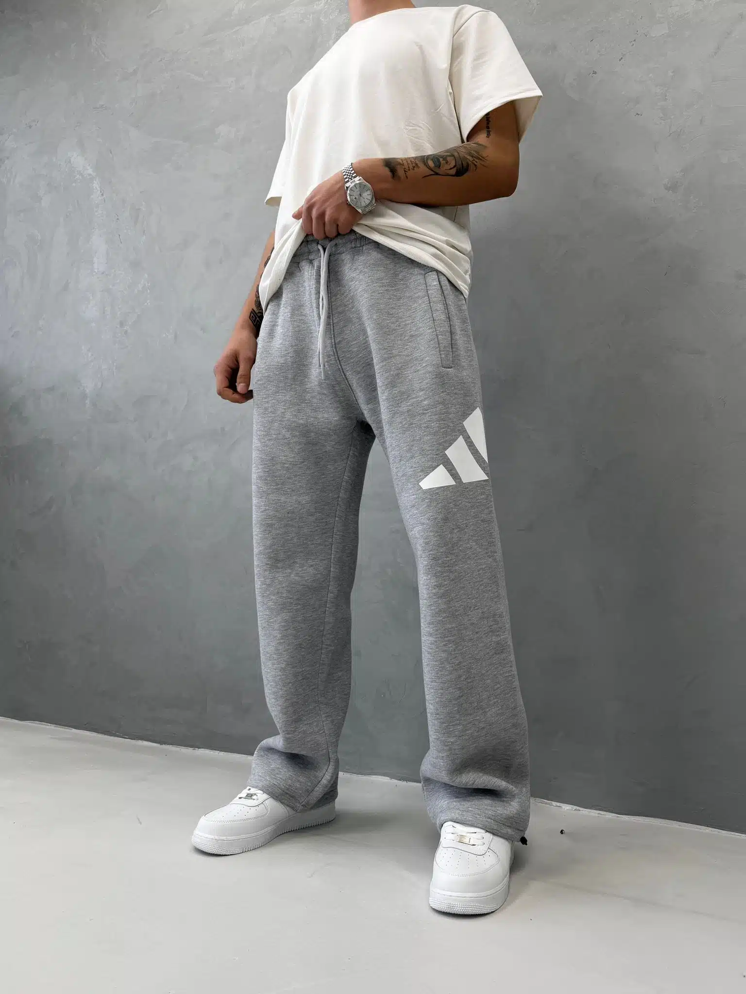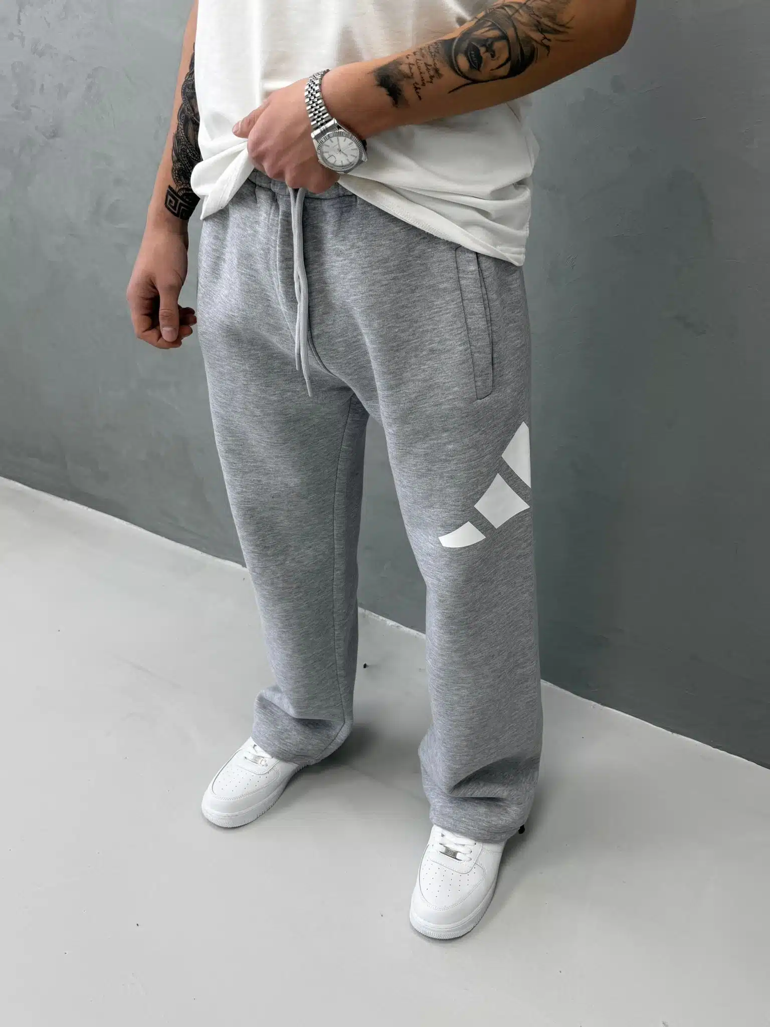‘AD’ Büyük Baskılı Lastikli Stoper Paça Baggy Eşofman – Gri