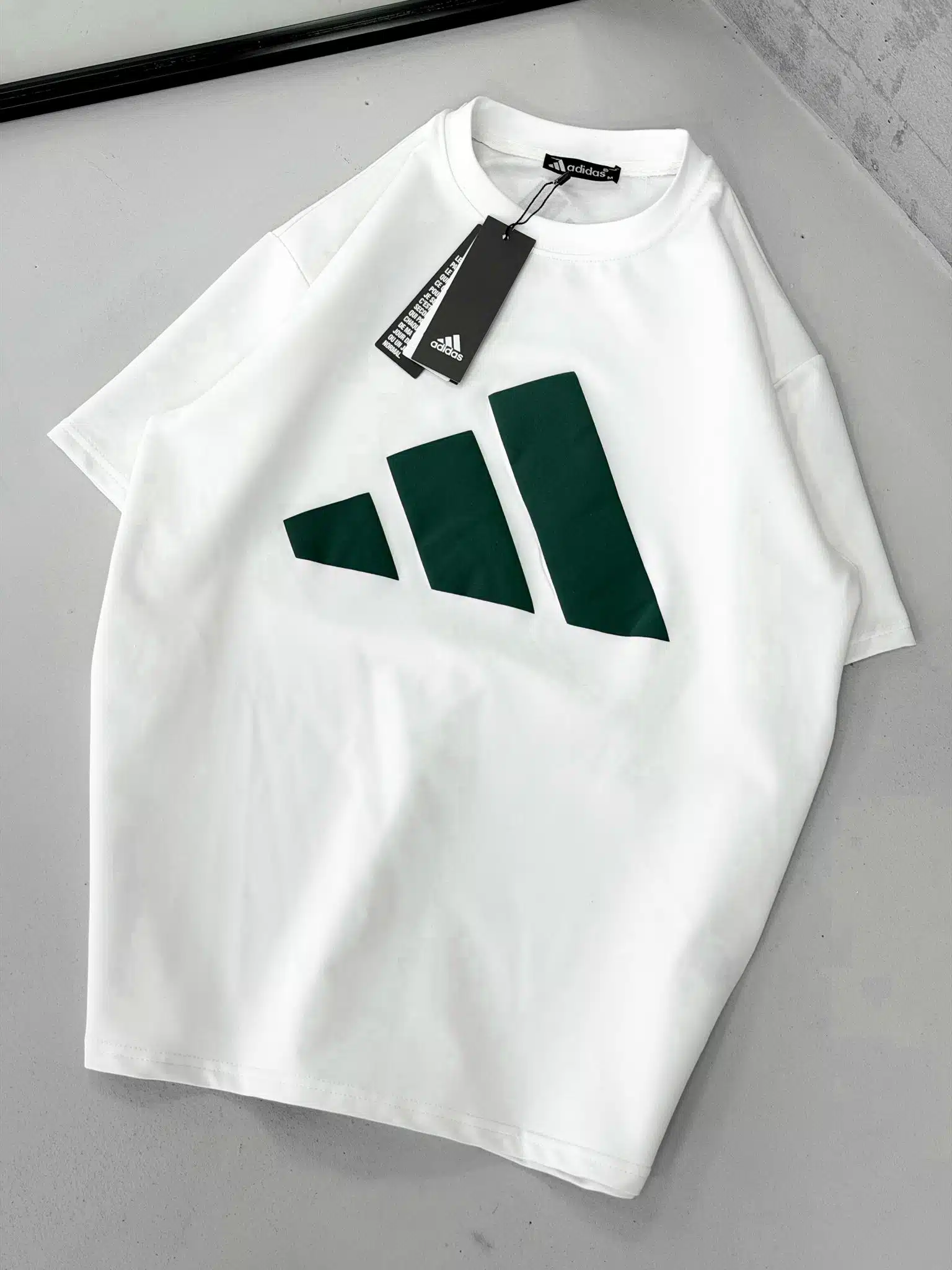 AD Büyük Kabartma Baskı Detaylı Bisiklet Yaka Tshirt – Beyaz