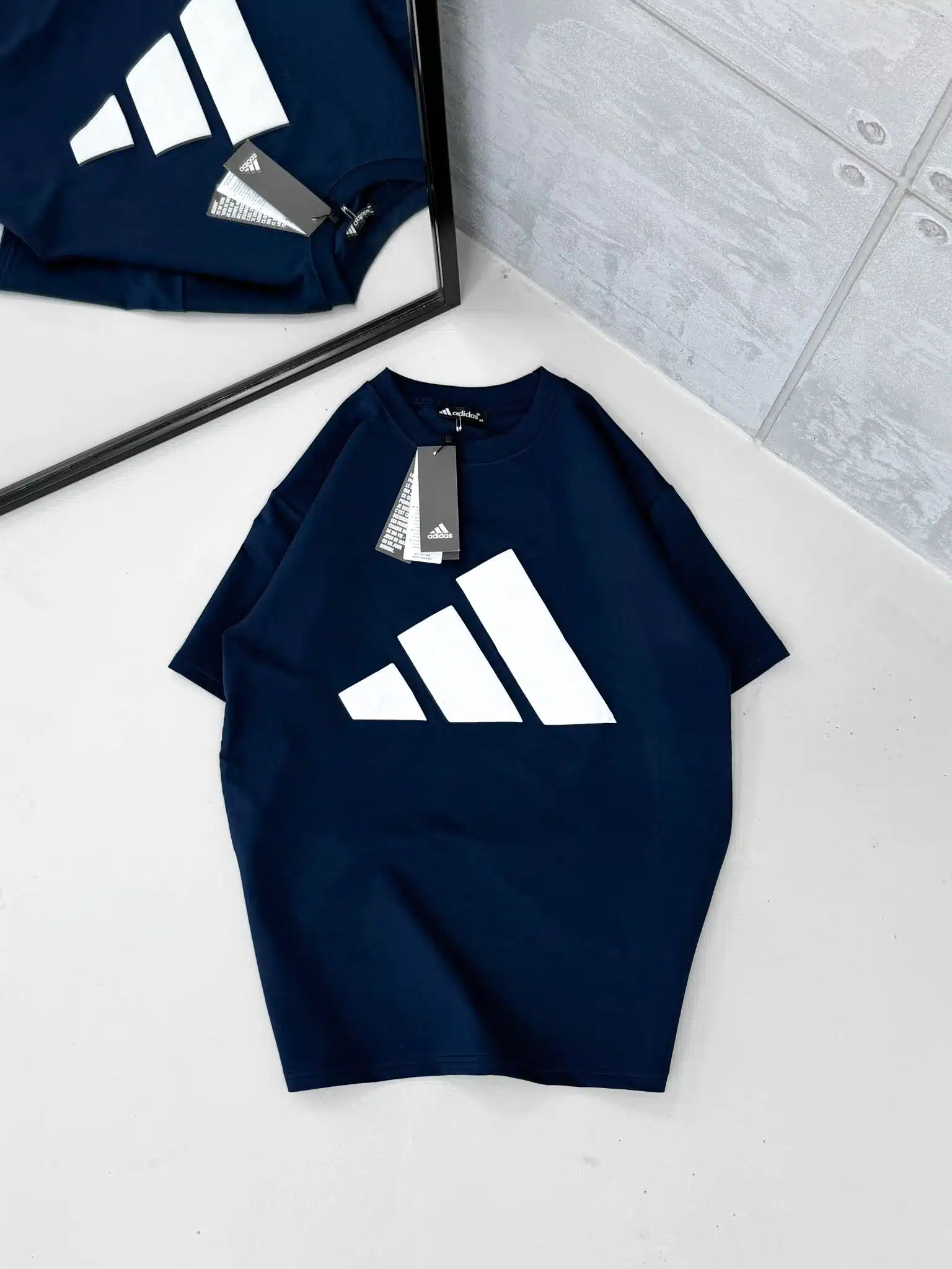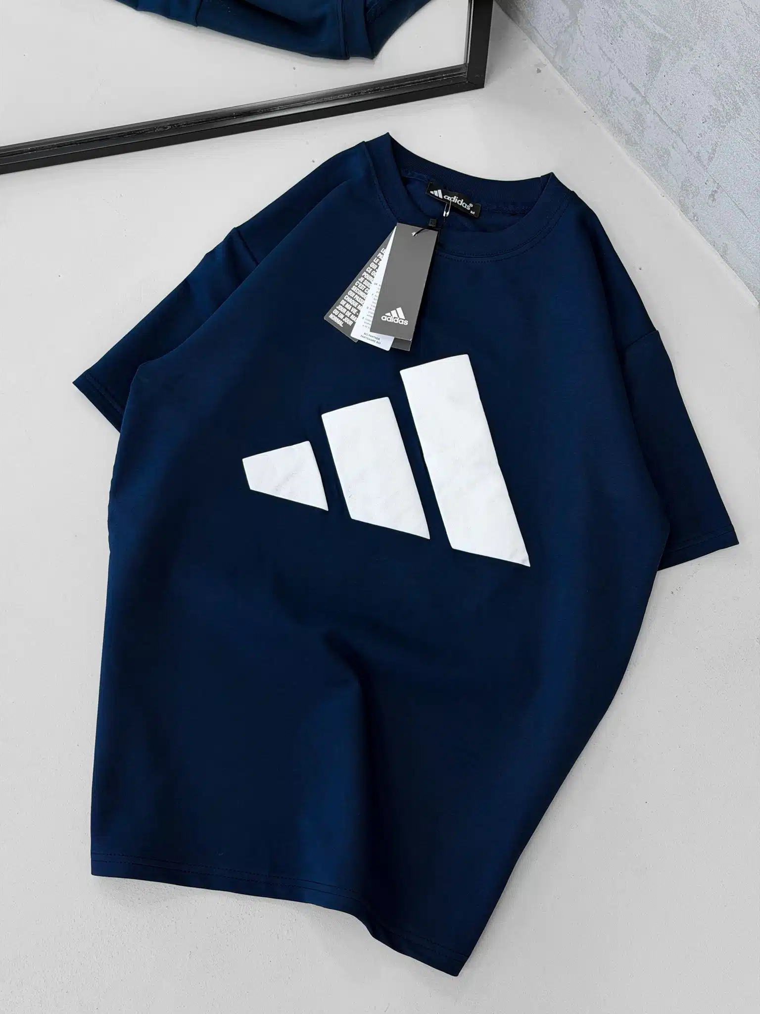 AD Büyük Kabartma Baskı Detaylı Bisiklet Yaka Tshirt – Lacivert