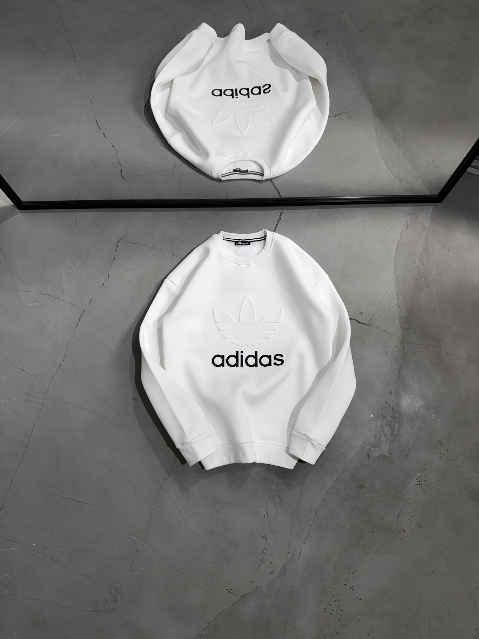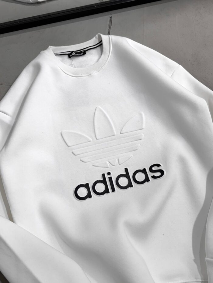 AD Büyük Kabartma Baskılı Üç İplik Sweatshirt – Beyaz