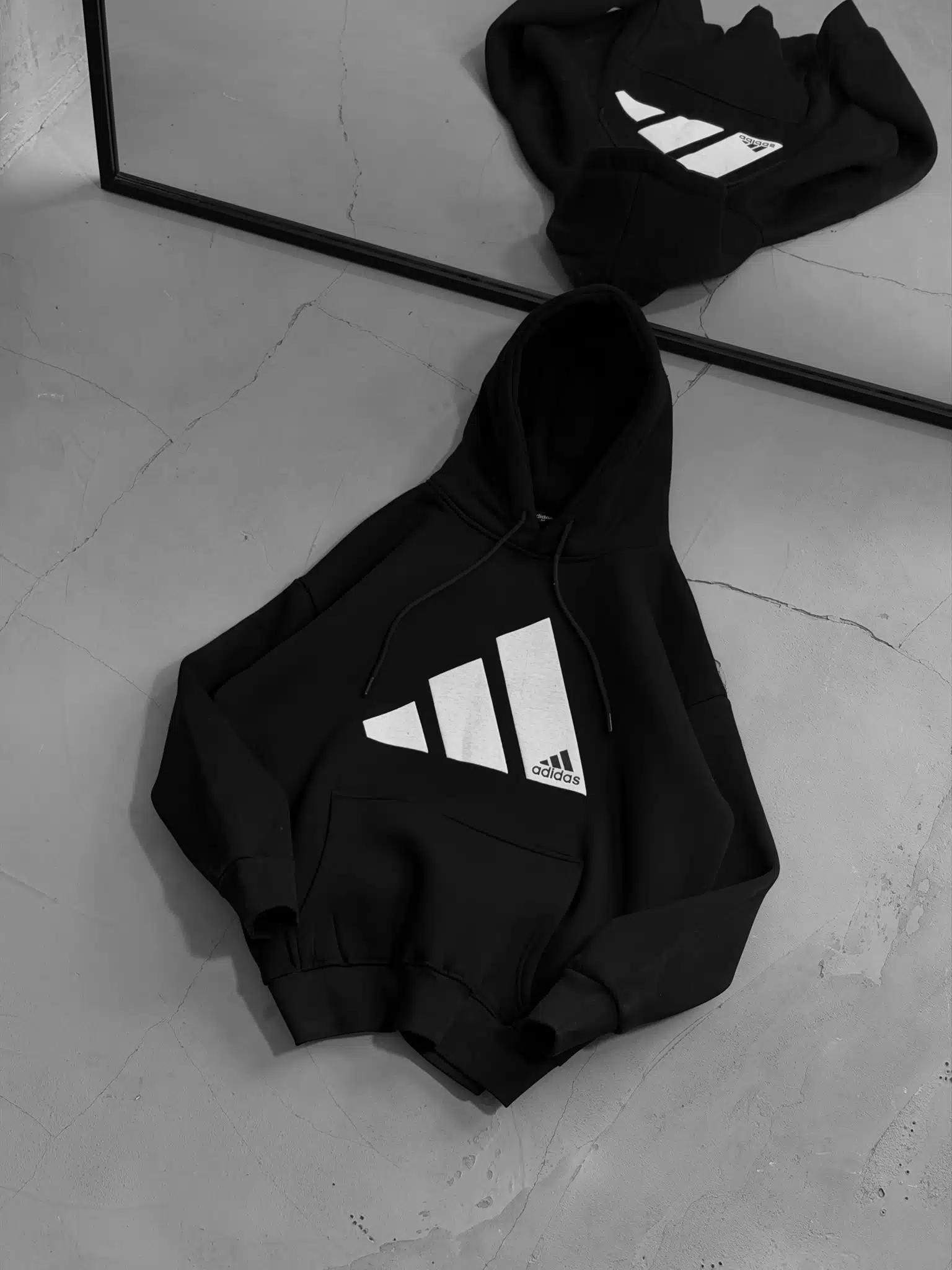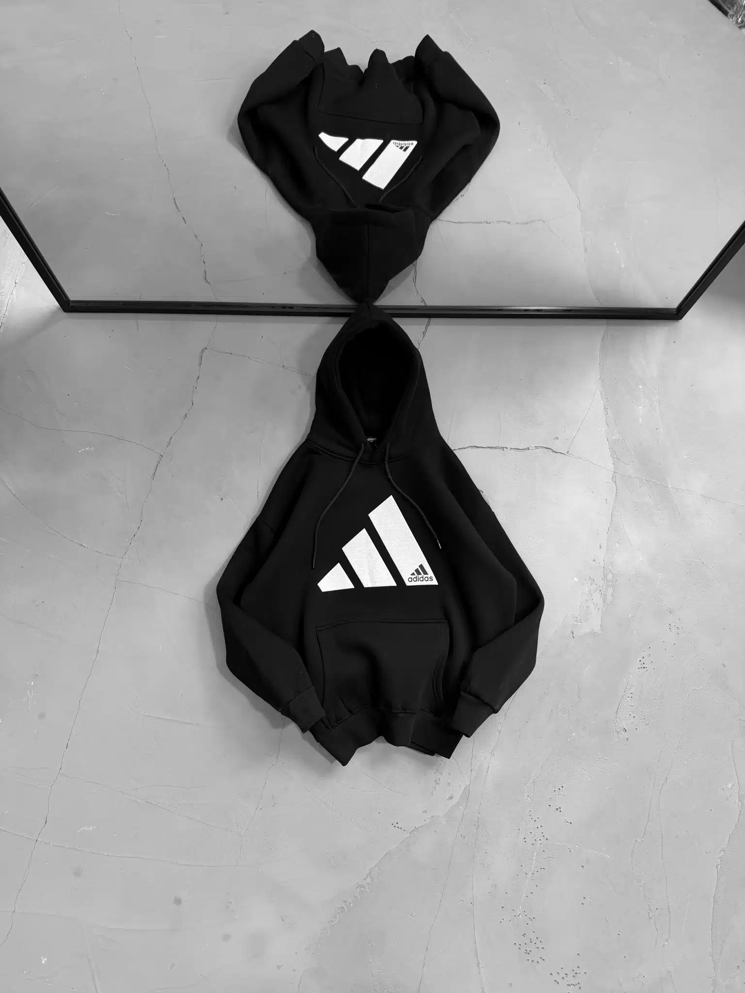 AD Büyük Kabartma Baskılı Üç İplik Kapşonlu Sweatshirt – Siyah