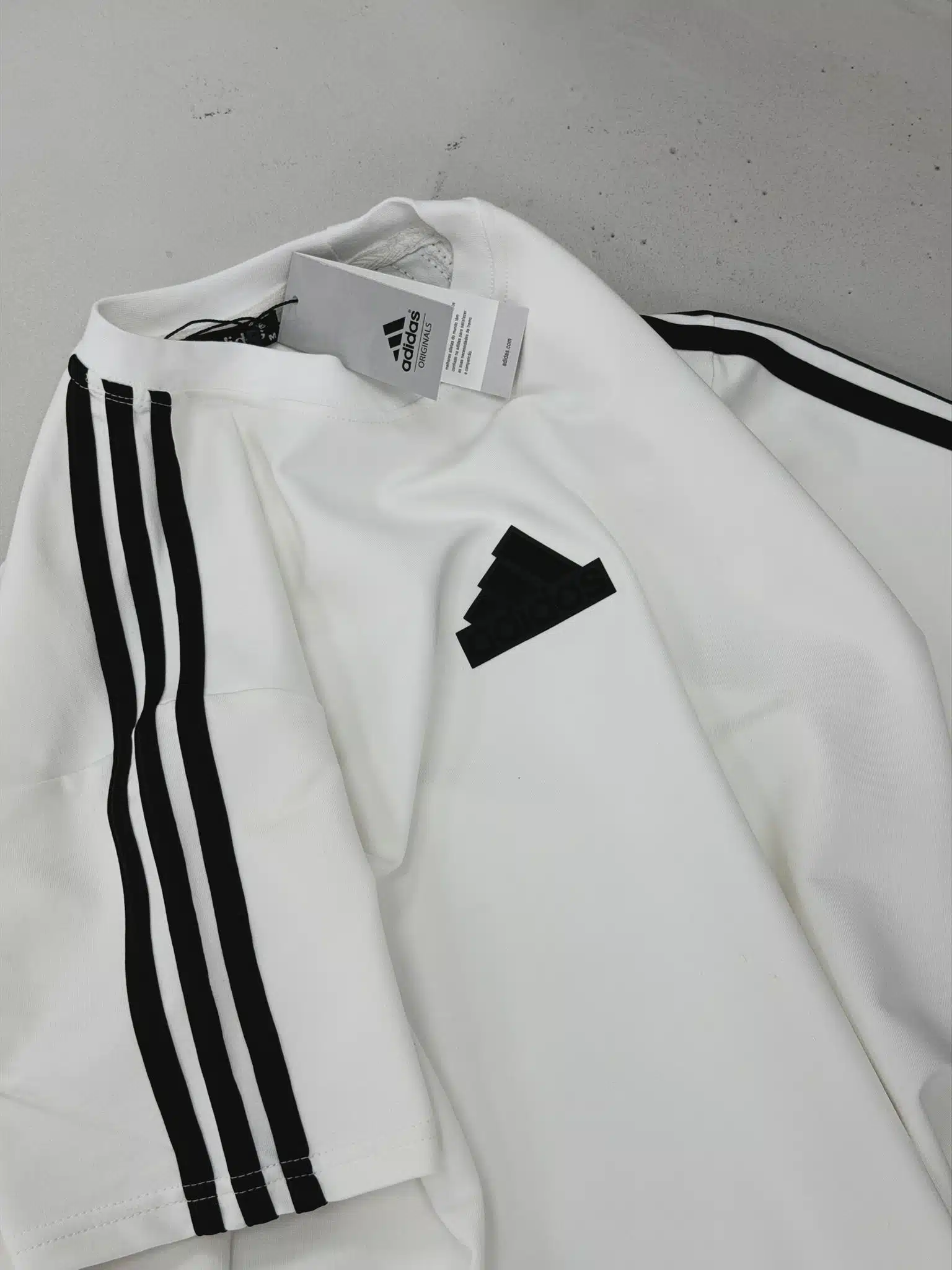 AD Enjeksiyon Baskı Detaylı 3 Şeritli Bisiklet Yaka Tshirt – Beyaz