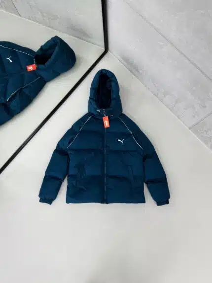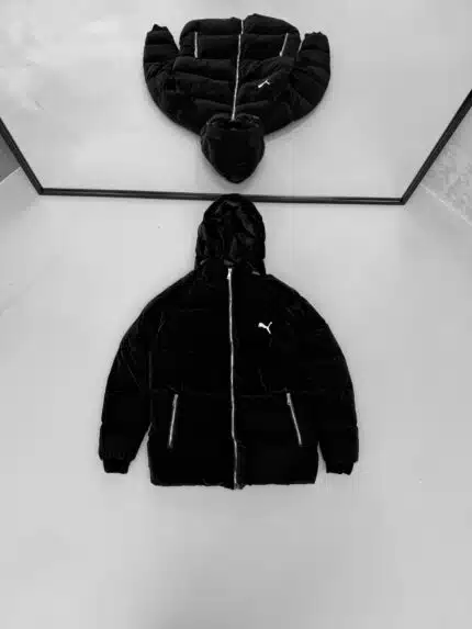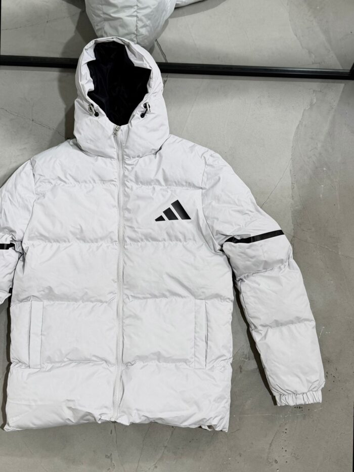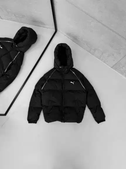 AD Siyah Detaylı Kapüşonlu Şişme Mont – Gri