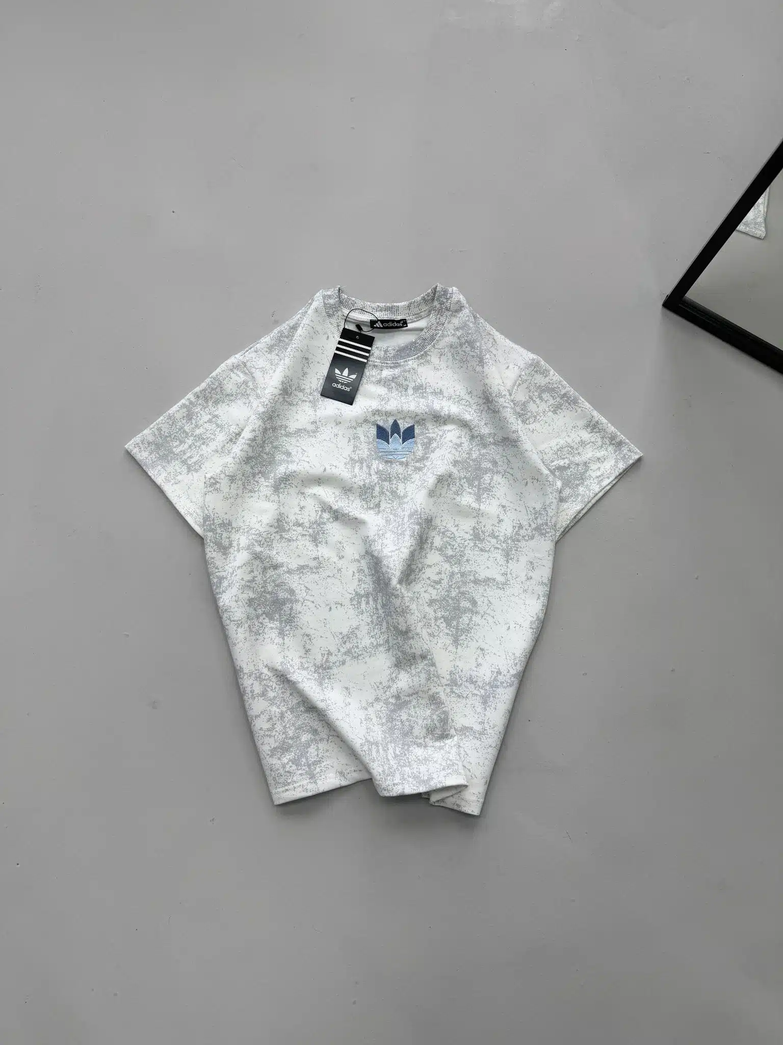 AD Yıkamalı Retro Nakış Detaylı Bisiklet Yaka Tshirt-Beyaz
