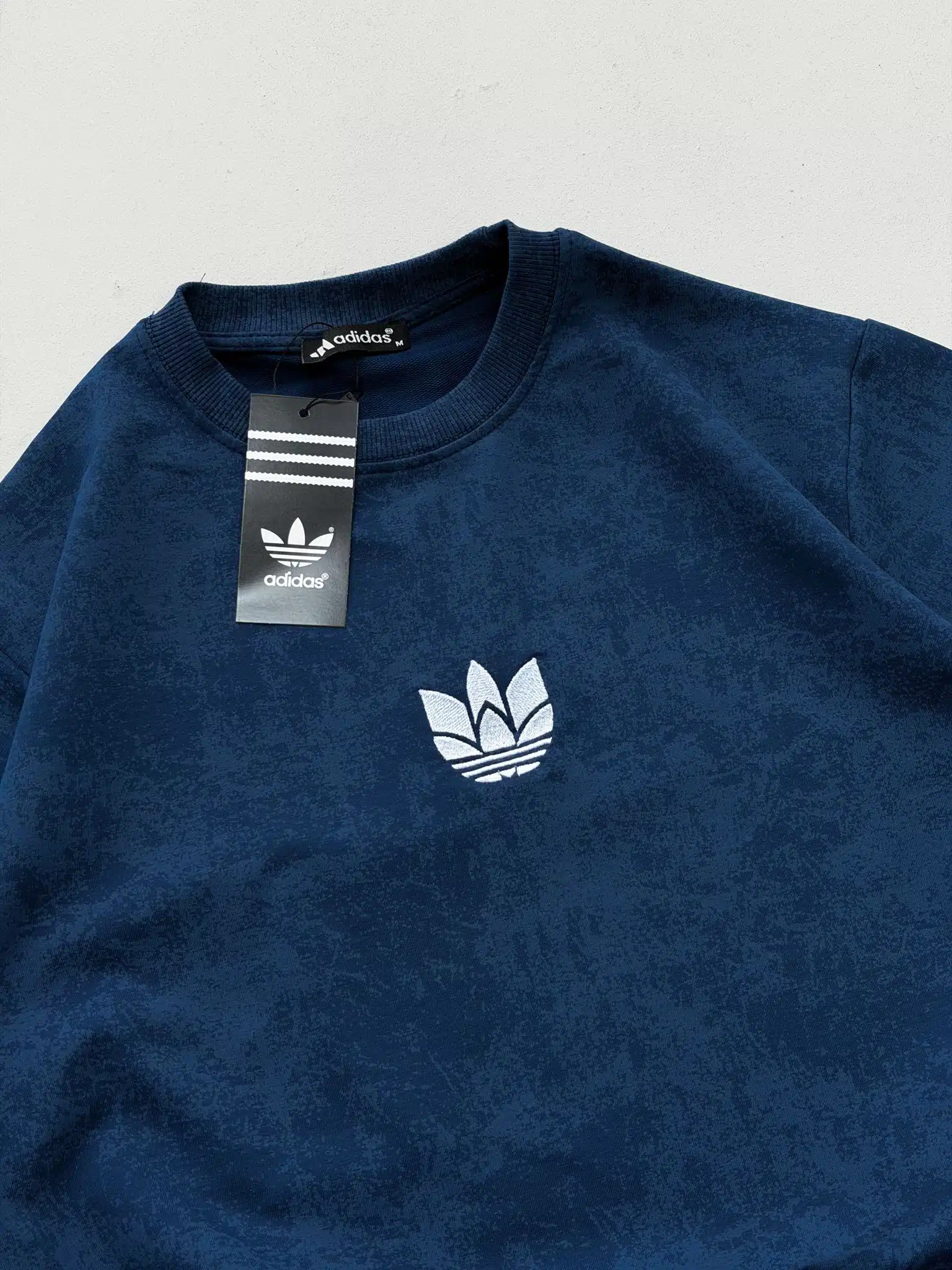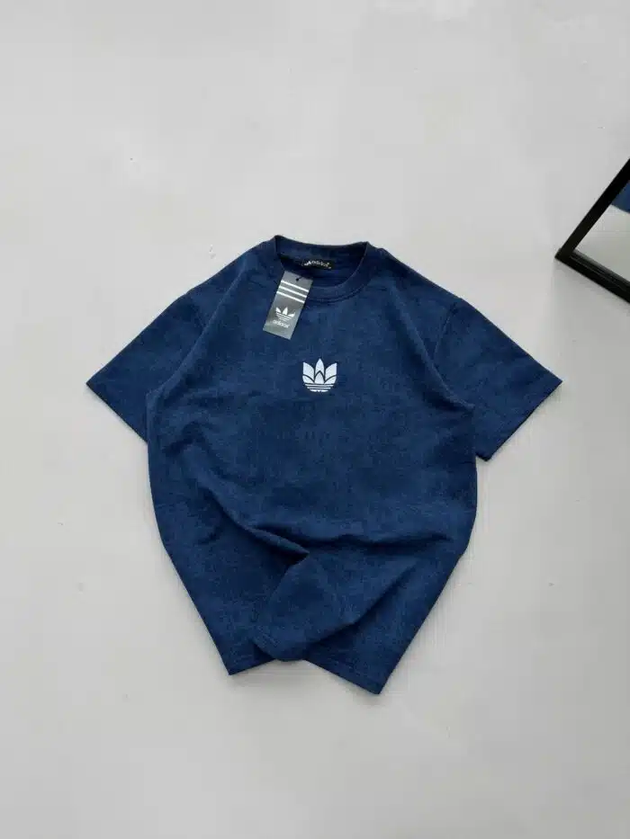 AD Yıkamalı Retro Nakış Detaylı Bisiklet Yaka Tshirt-Lacivert