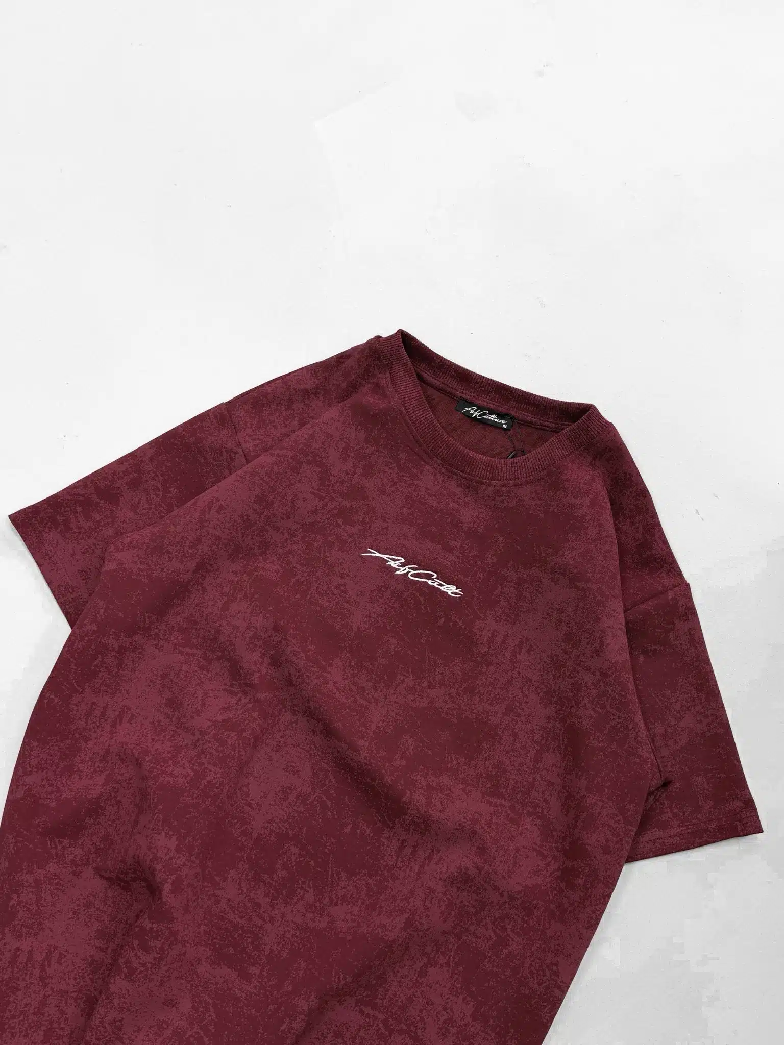 ASFCULT Yıkamalı Bisiklet Yaka Tshirt – Bordo