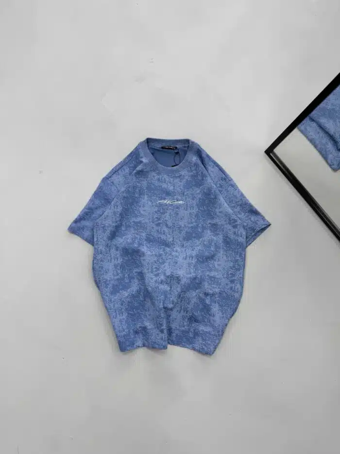ASFCULT Yıkamalı Bisiklet Yaka Tshirt – Mavi