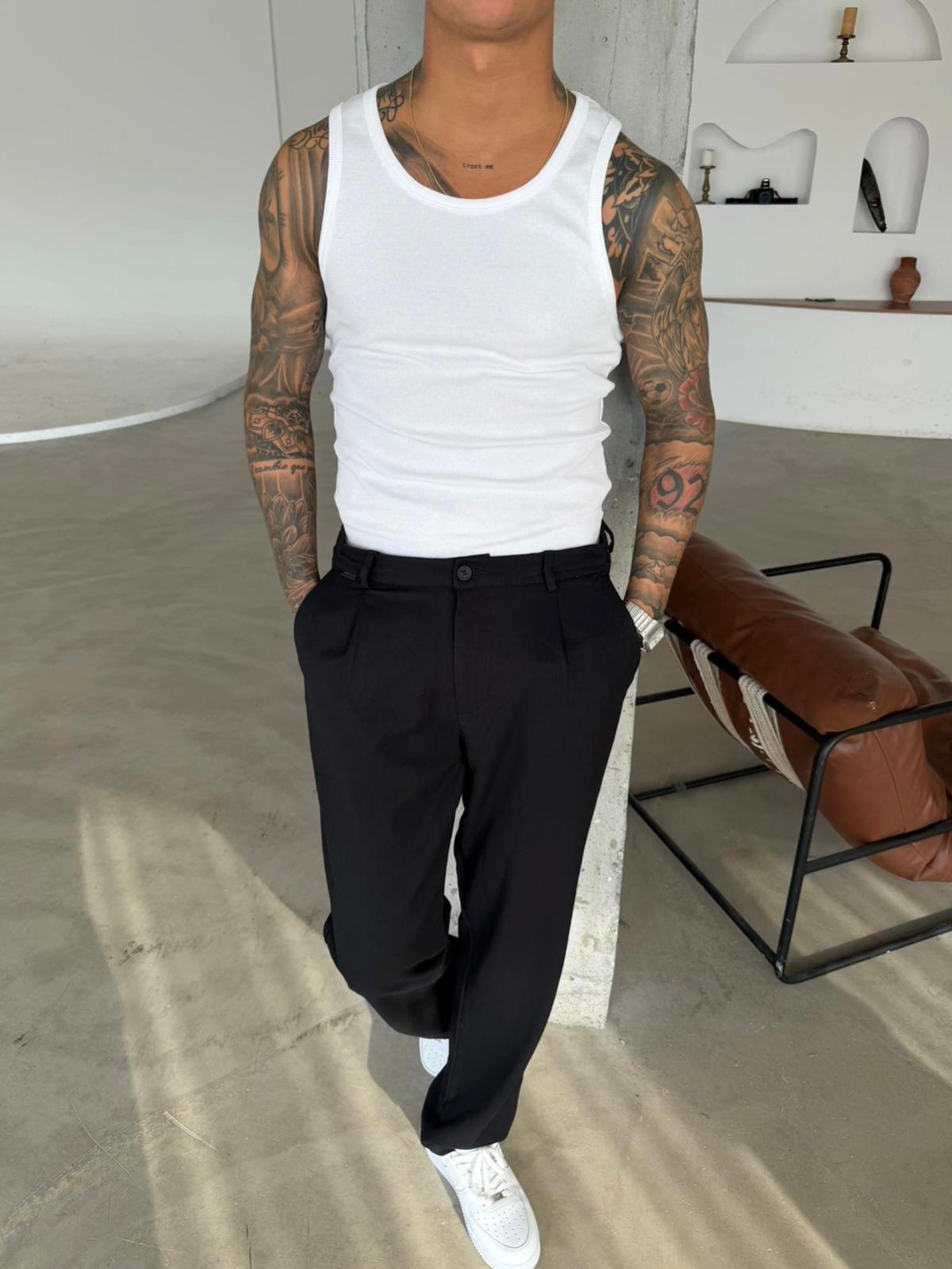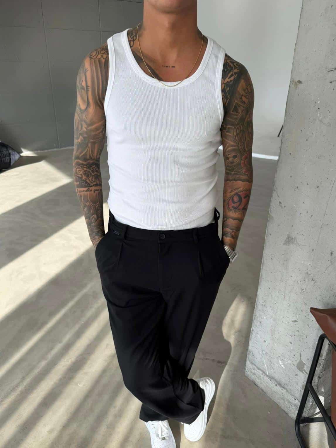 Basic Premium İmzalı Fitilli Atlet - Siyah
