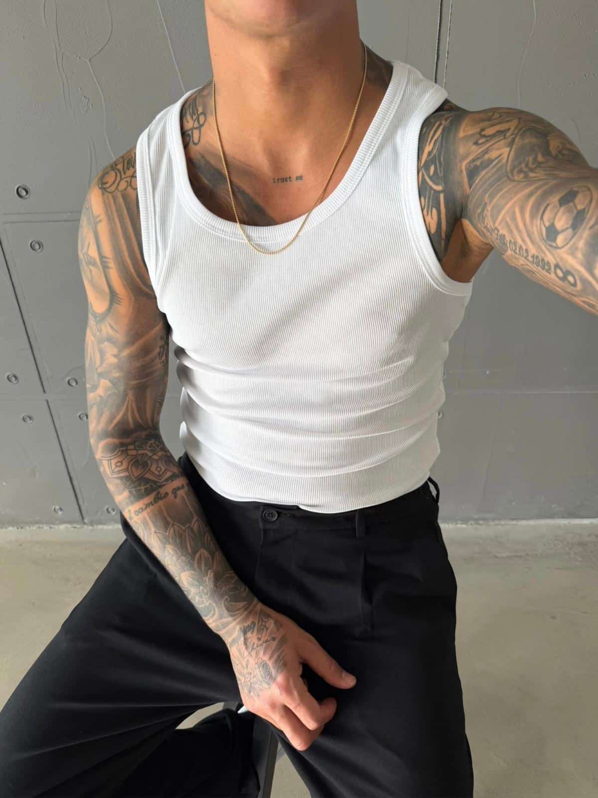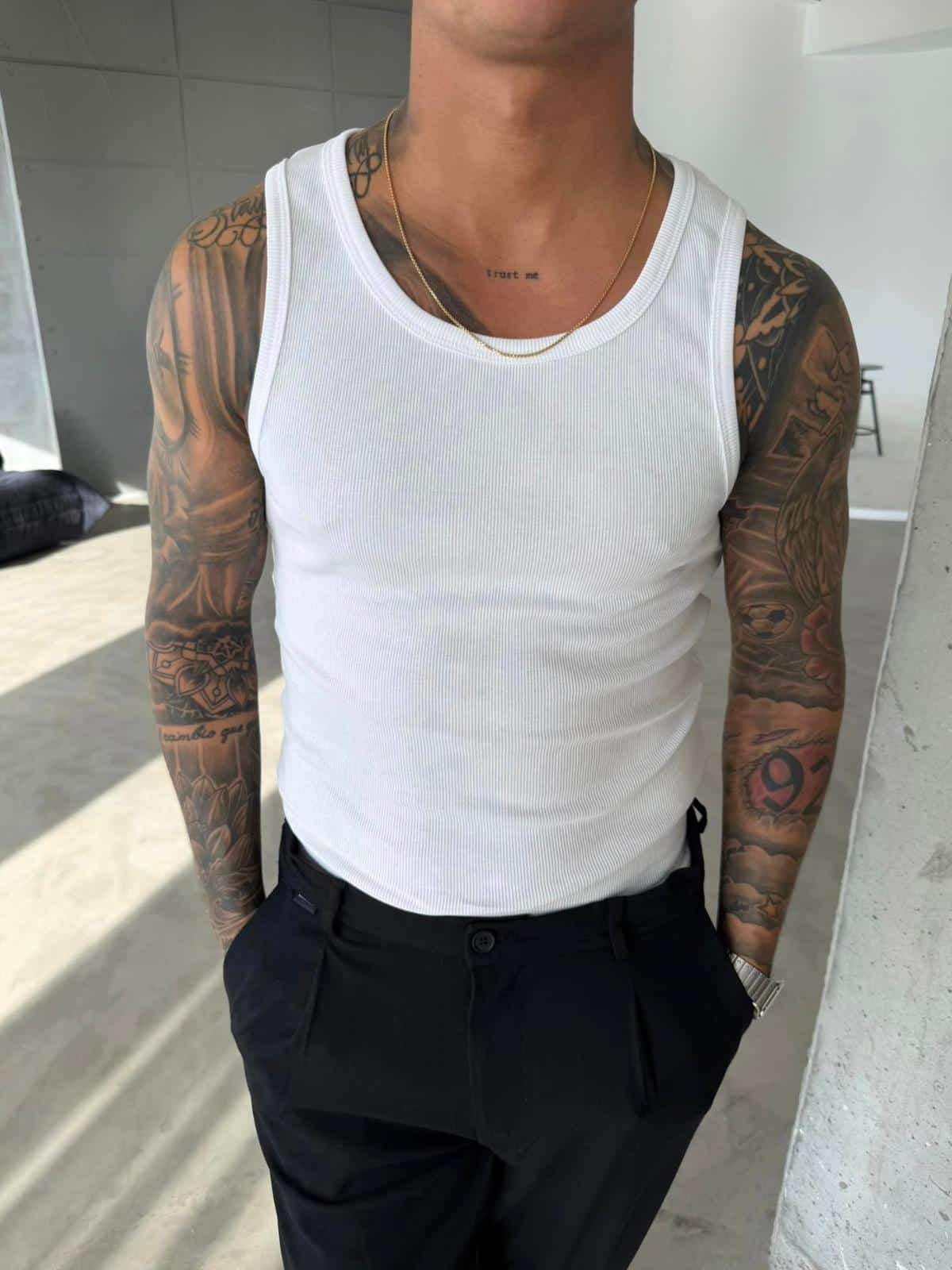 Basic Premium İmzalı Fitilli Atlet – Beyaz