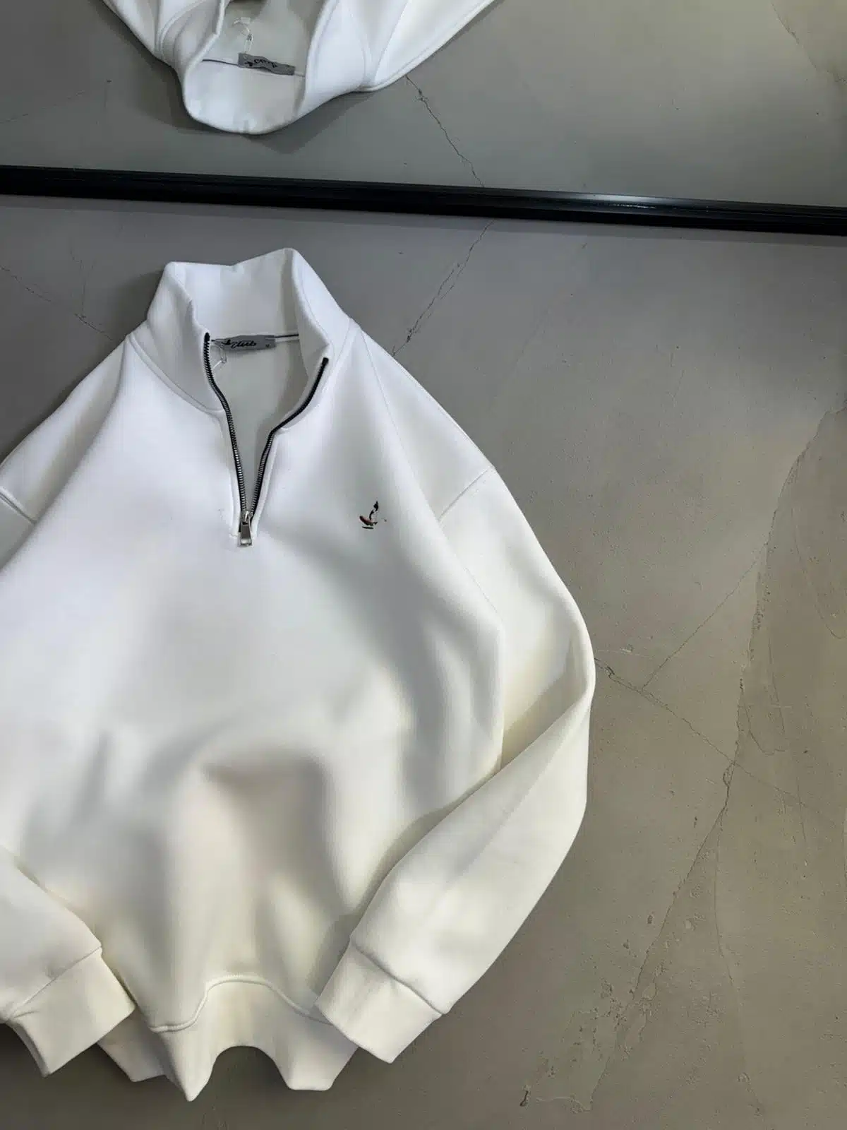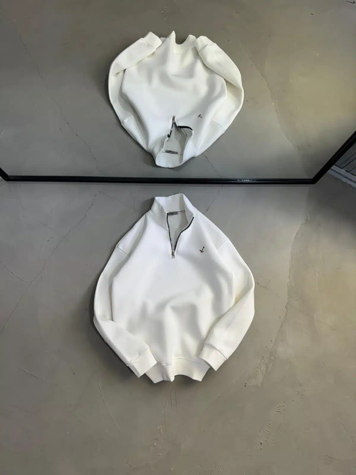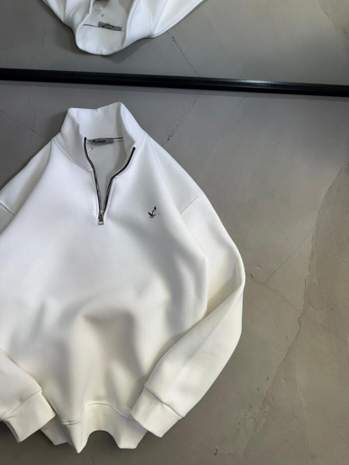 BC Nakışlı Üç İplik Yarım Fermuarlı Sweatshirt – Beyaz