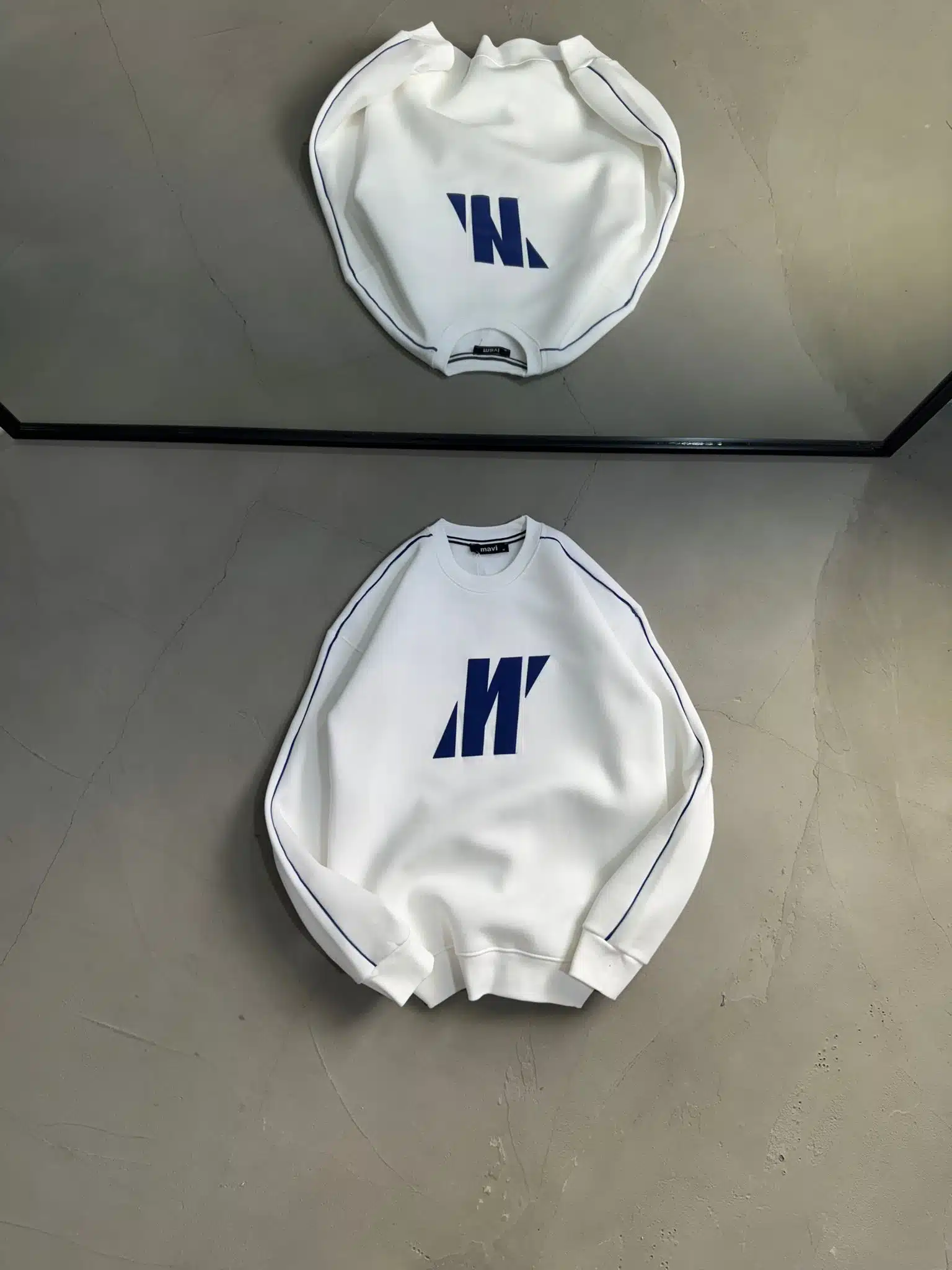 M Baskılı Üç İplik Sweatshirt – Beyaz