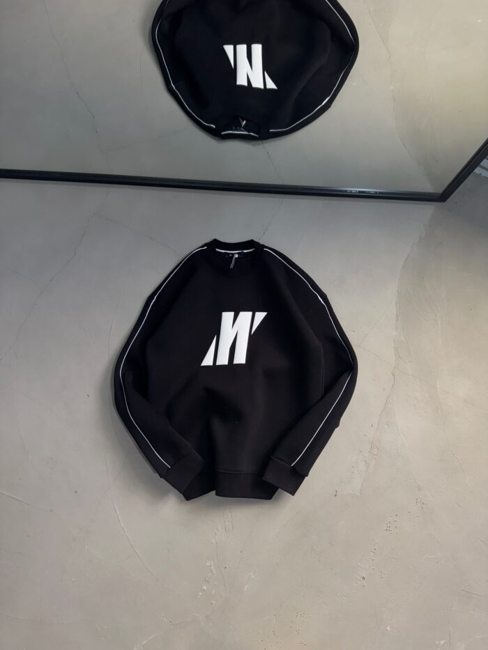 M Baskılı Üç İplik Sweatshirt – Siyah