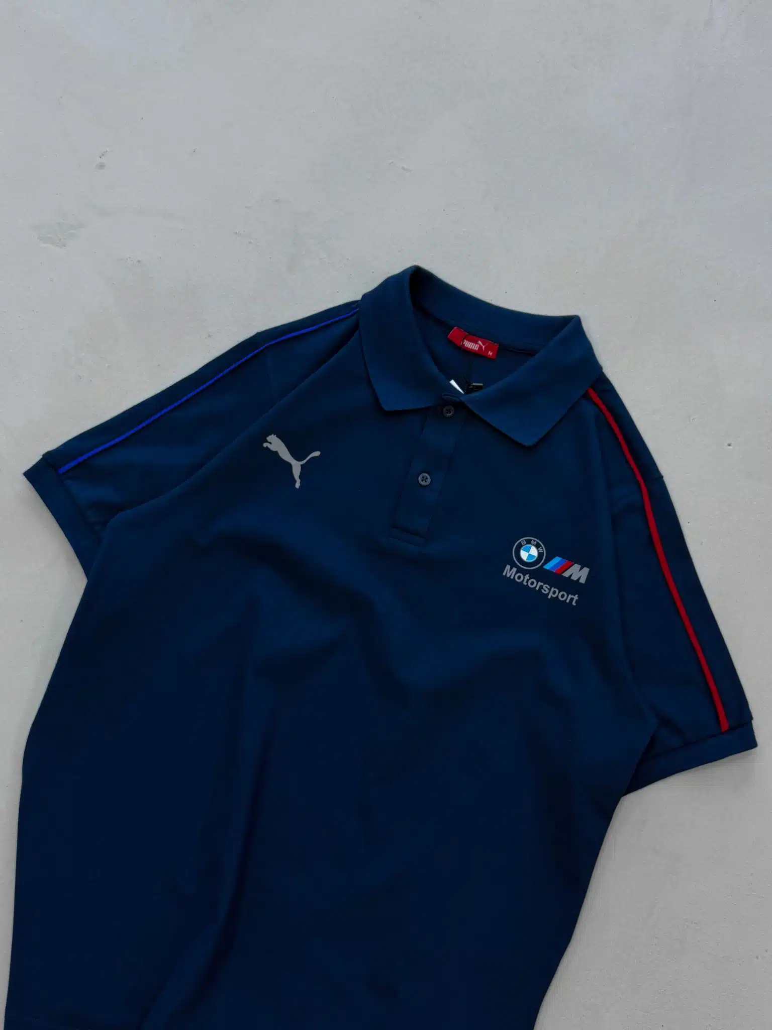 BMW Enjeksiyon Baskılı Şerit Detaylı Polo Yaka Tshirt-Lacivert