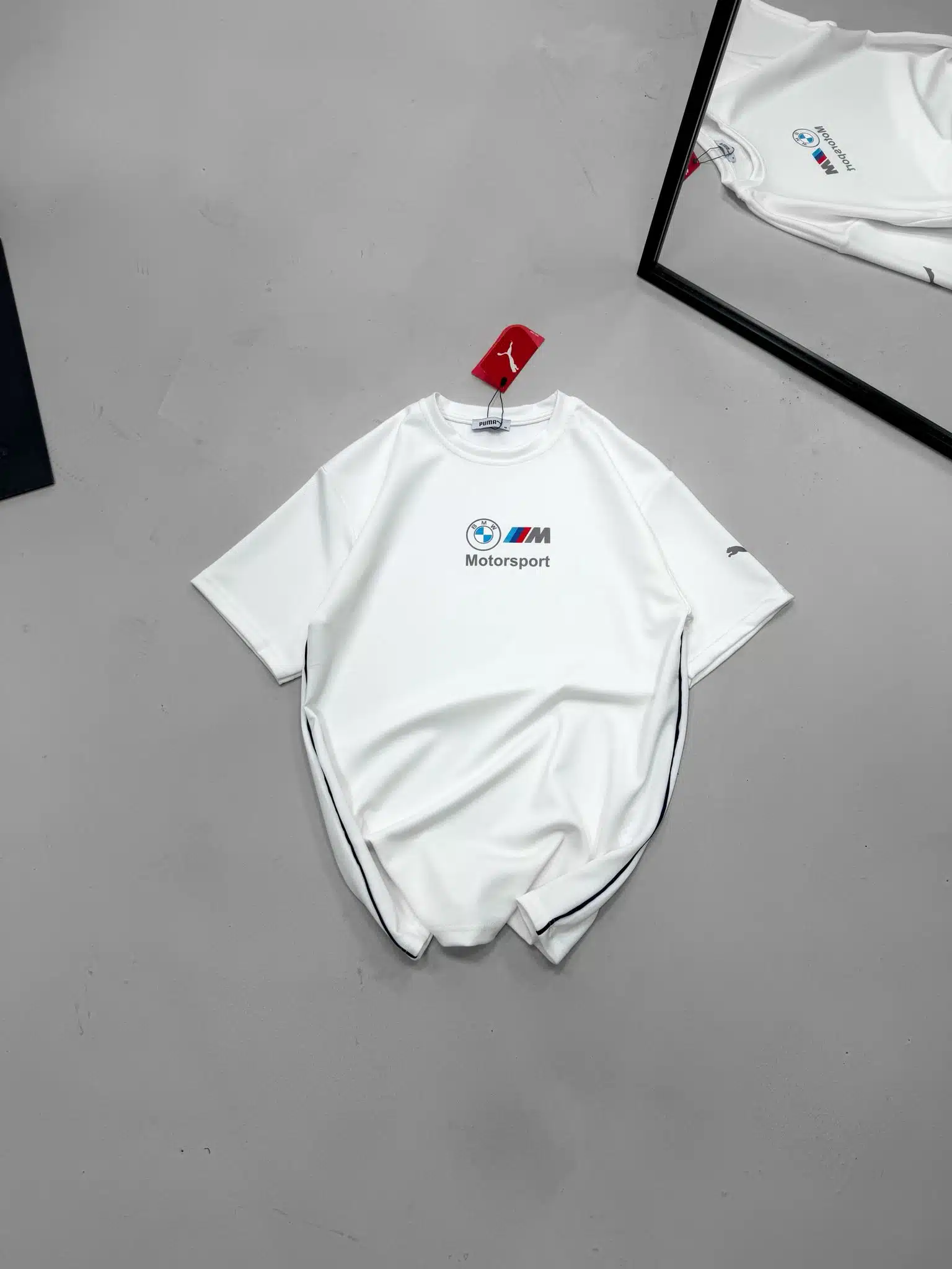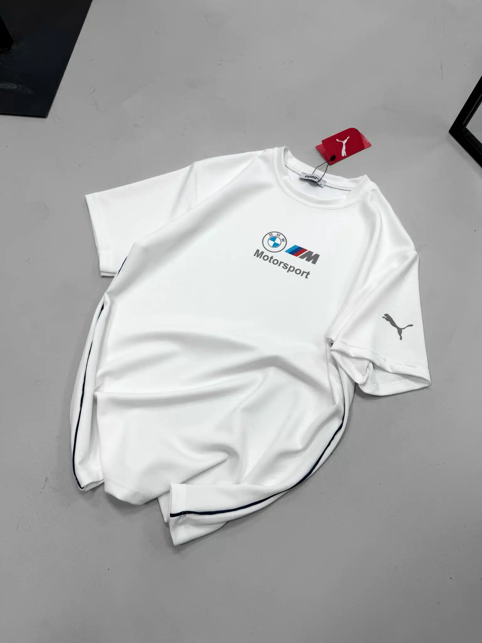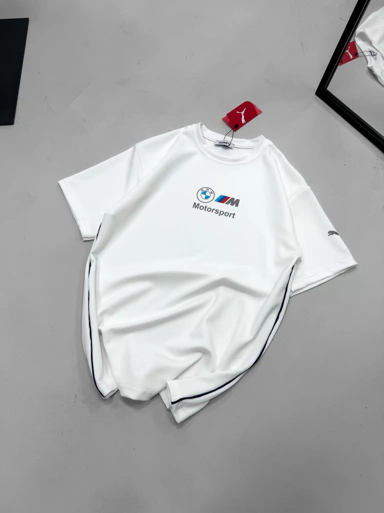 BMW Premium Baskılı Bisiklet Yaka Tshirt – Beyaz