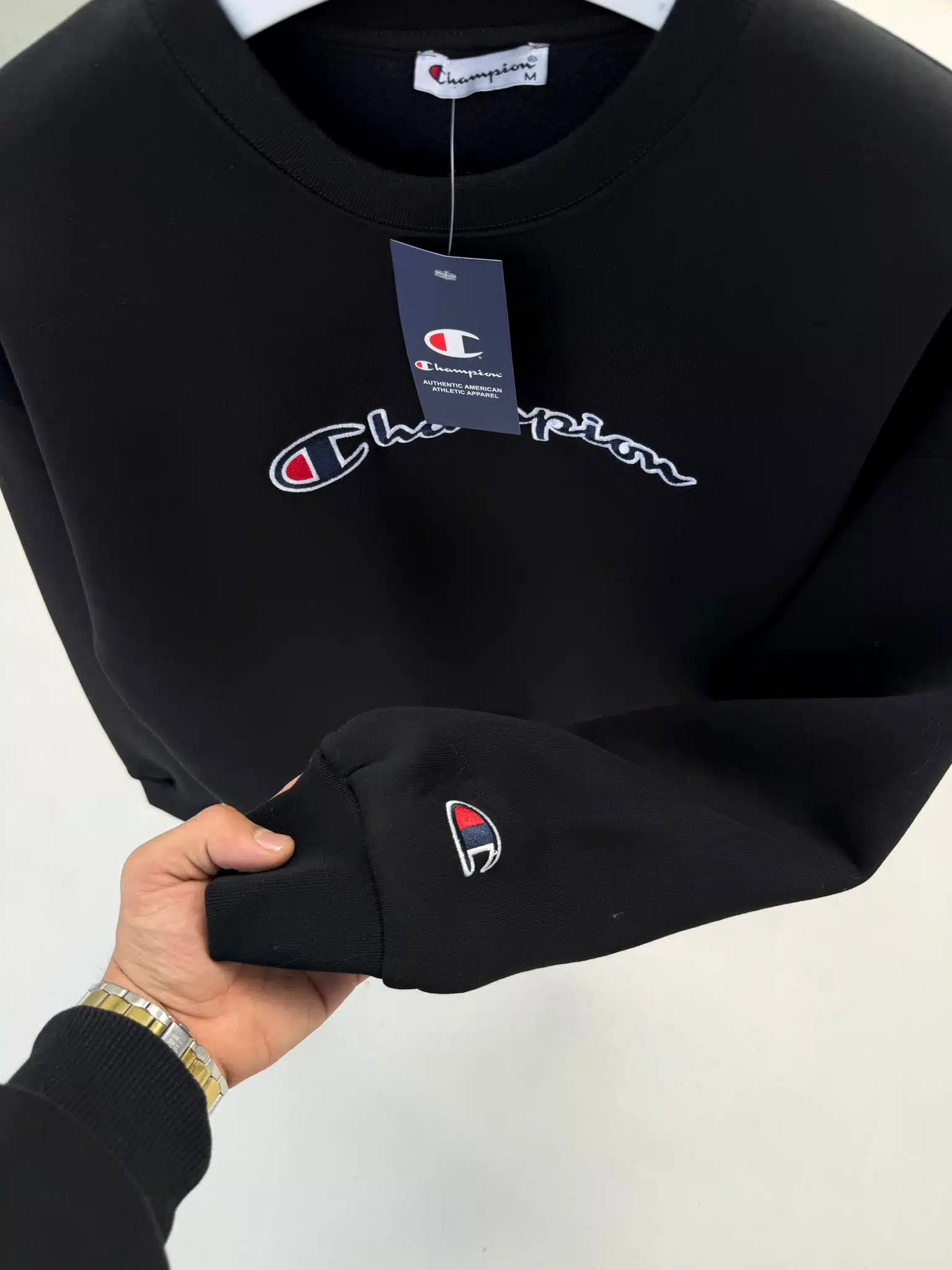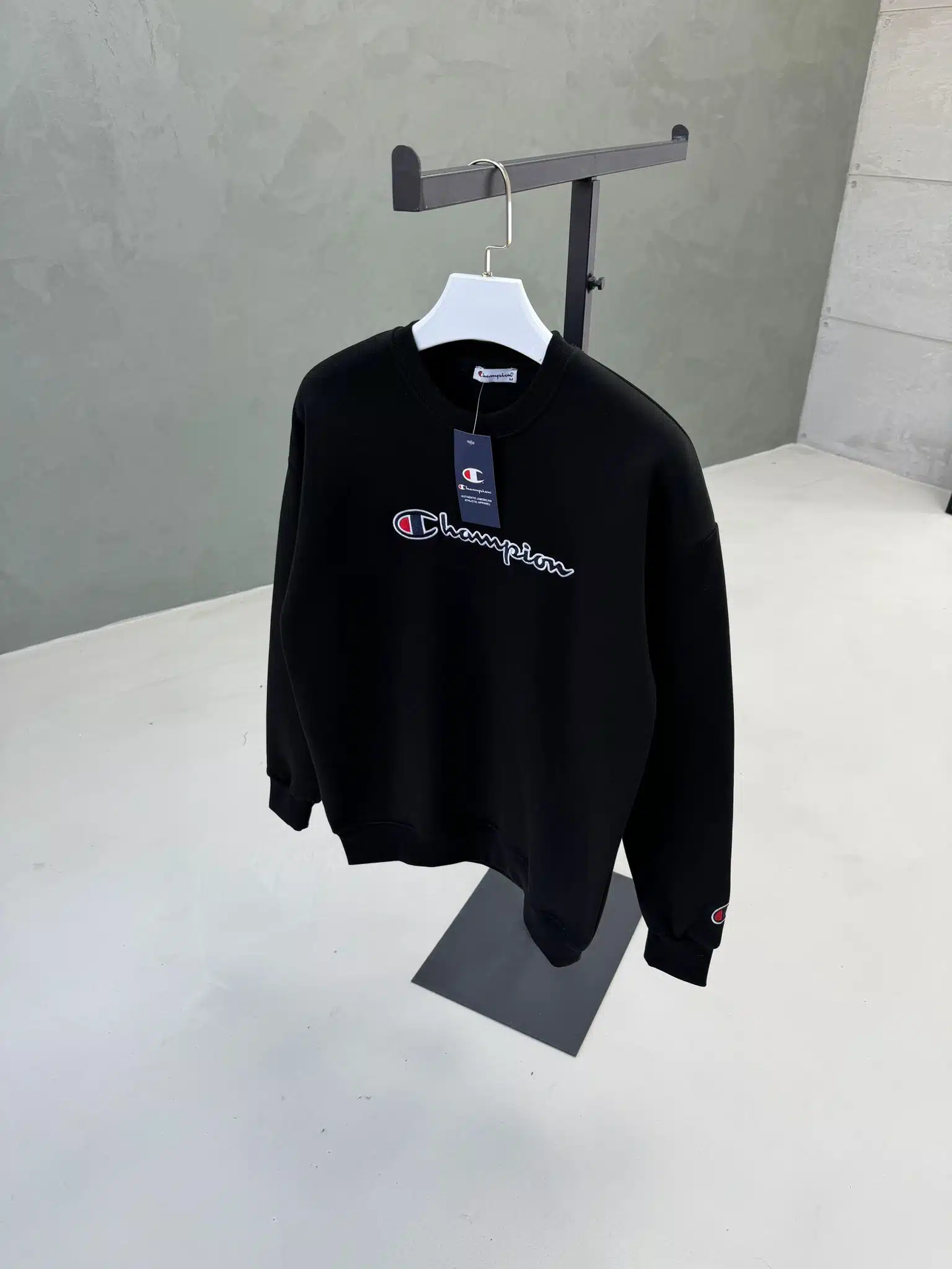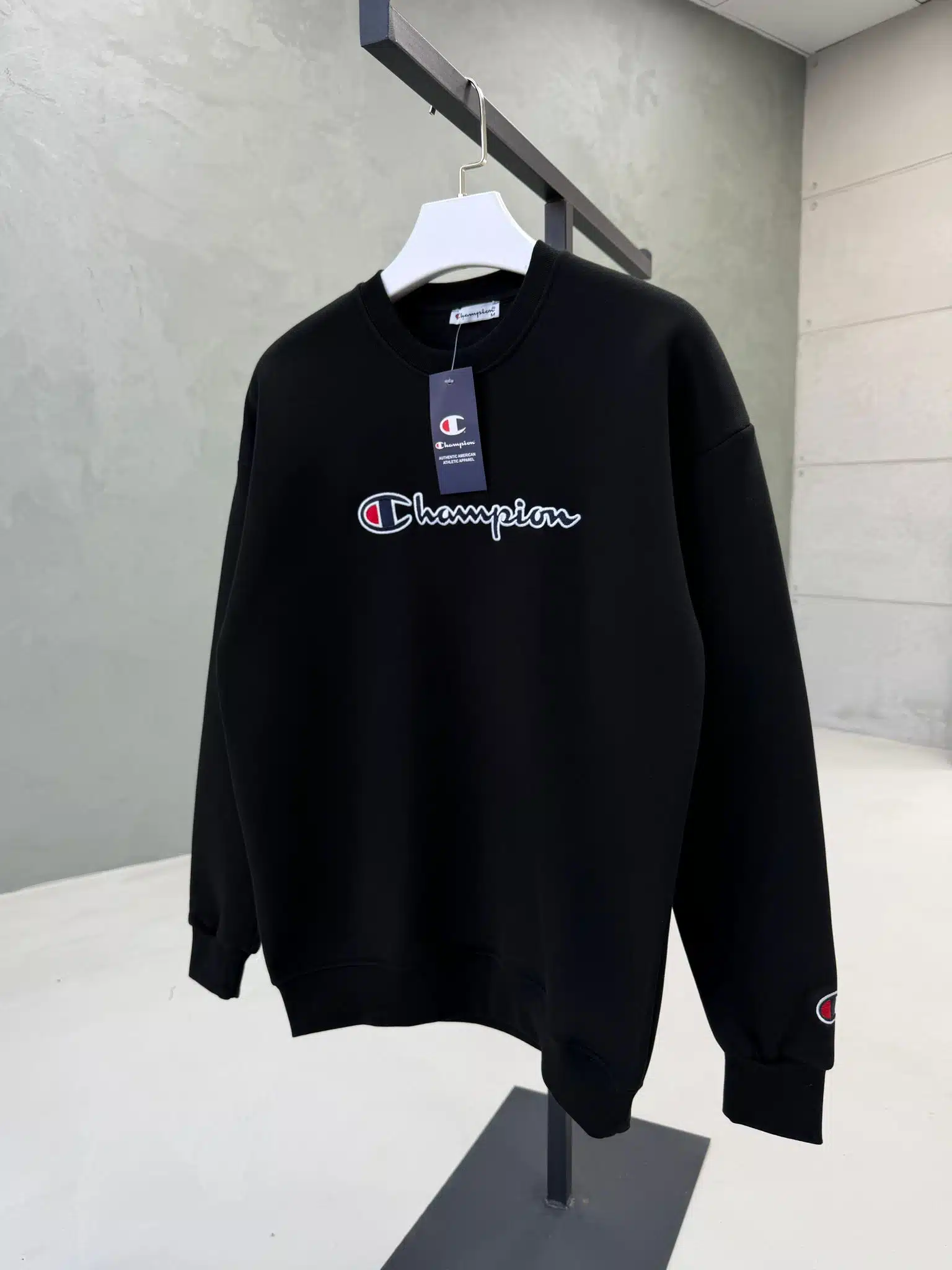 CHMP Nakışlı Kol Detaylı Üç İplik Sweatshirt – Siyah