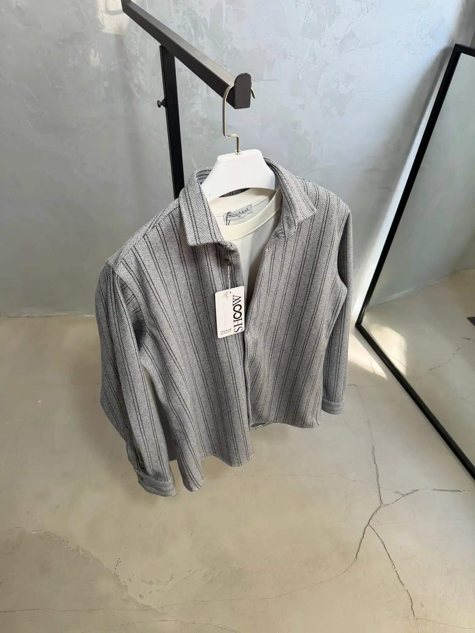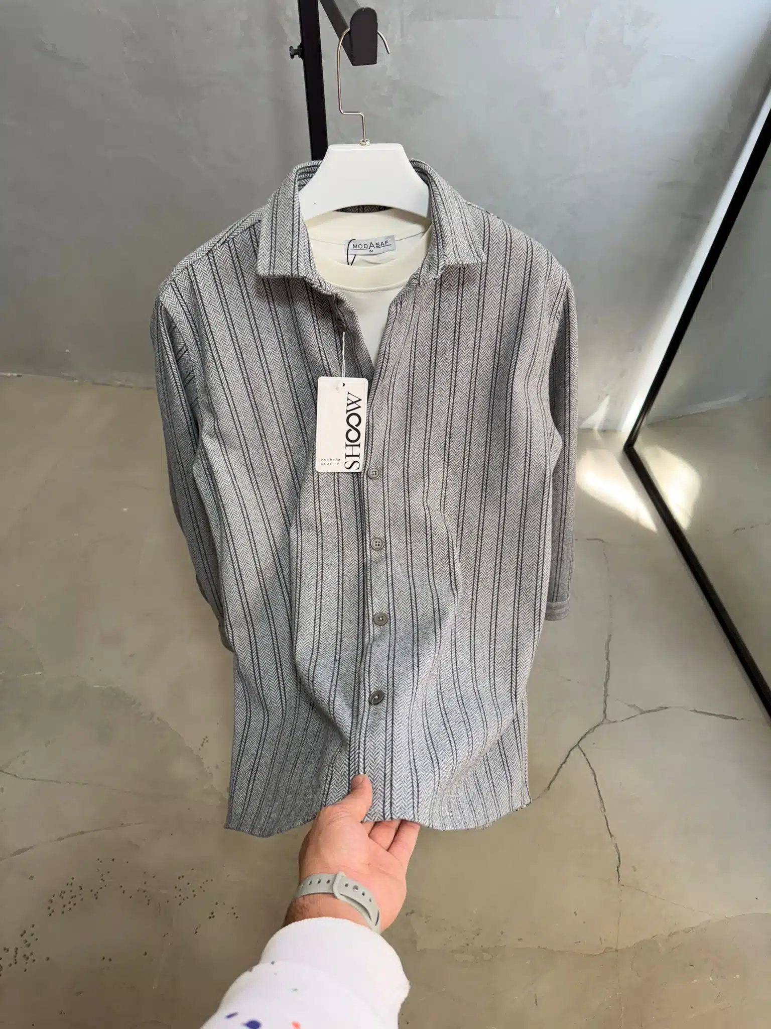 Çizgili Ultra Kalın Kışlık %100 Pamuk Gömlek – Füme