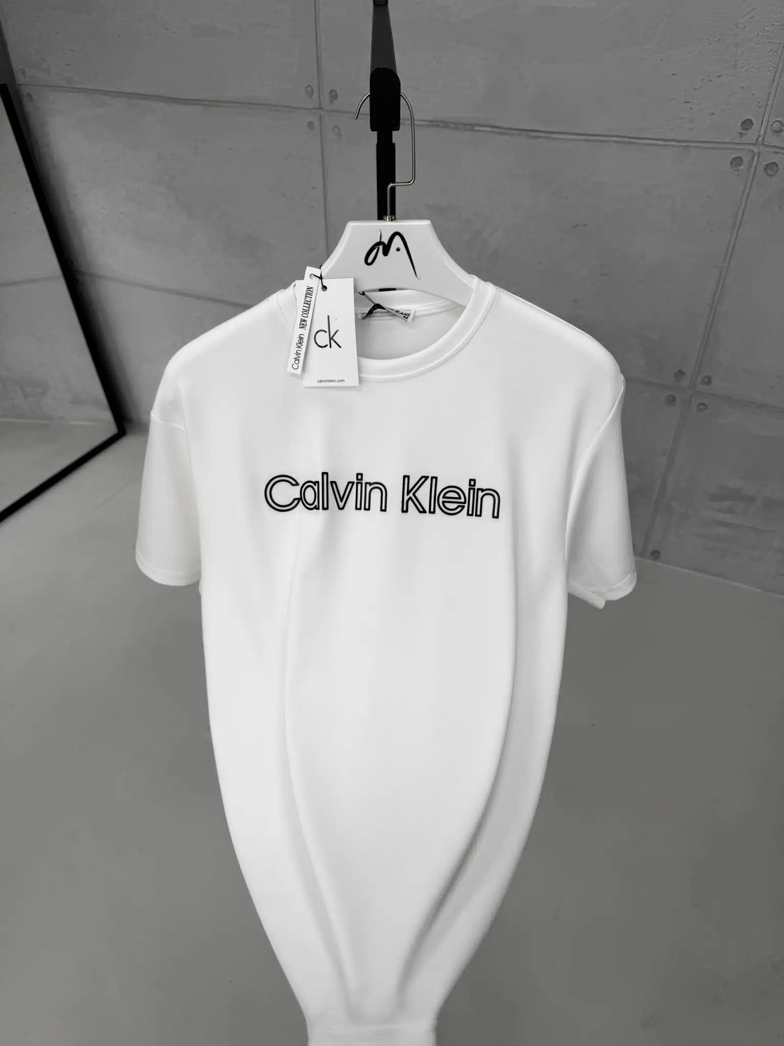CK Enjeksiyon Baskılı Bisiklet Yaka Tshirt – Beyaz