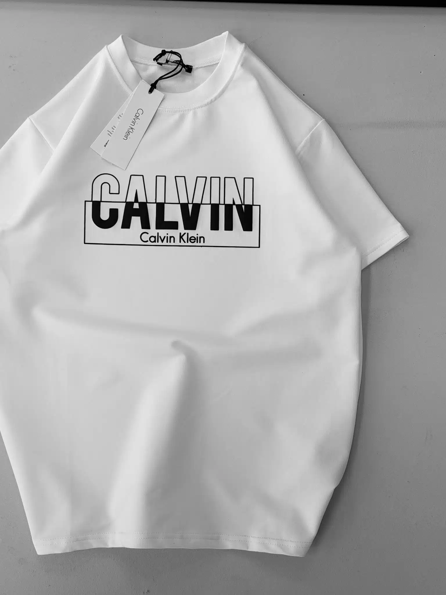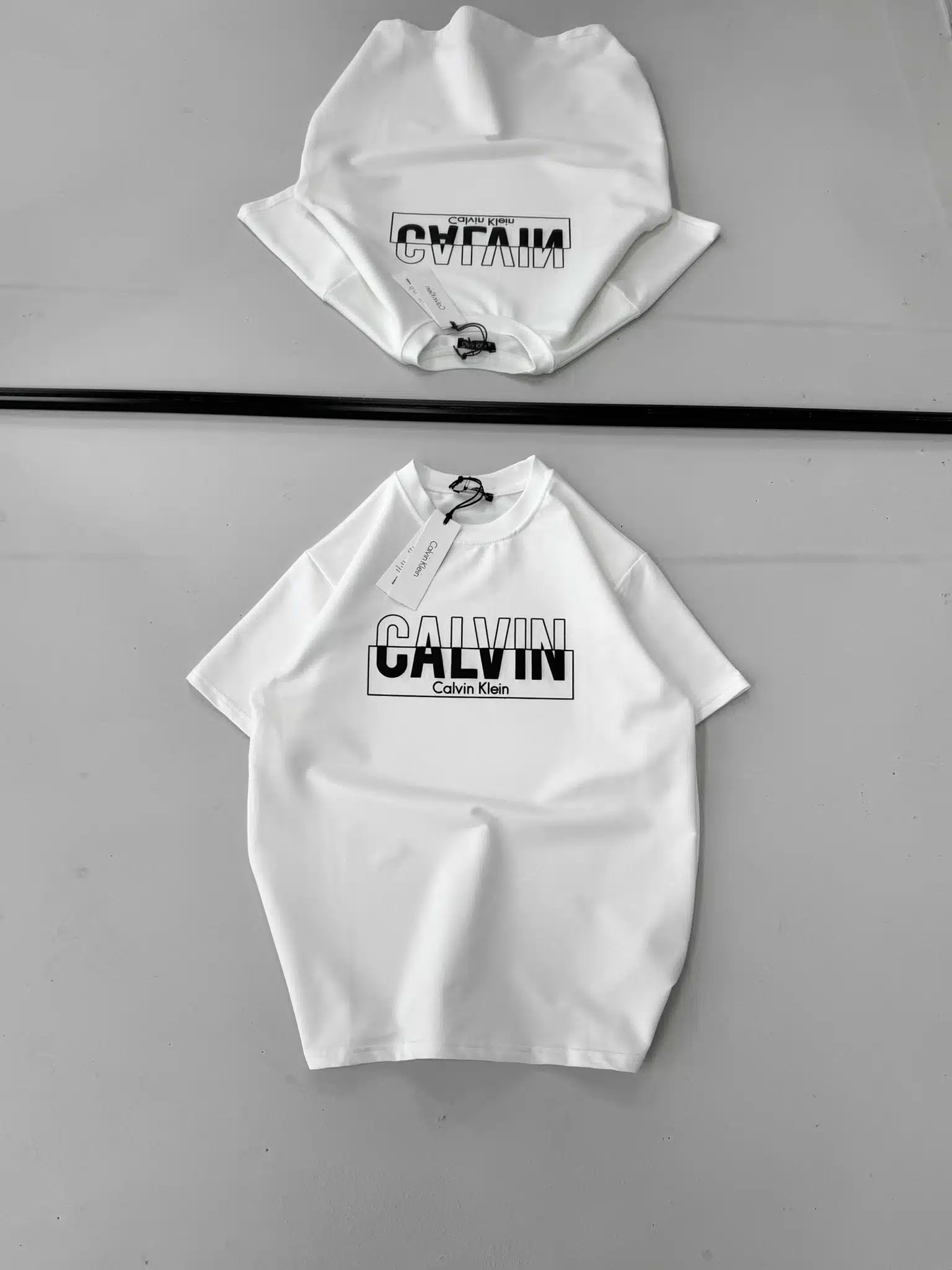 CK Kabartma Baskı Detaylı Bisiklet Yaka Tshirt – Beyaz