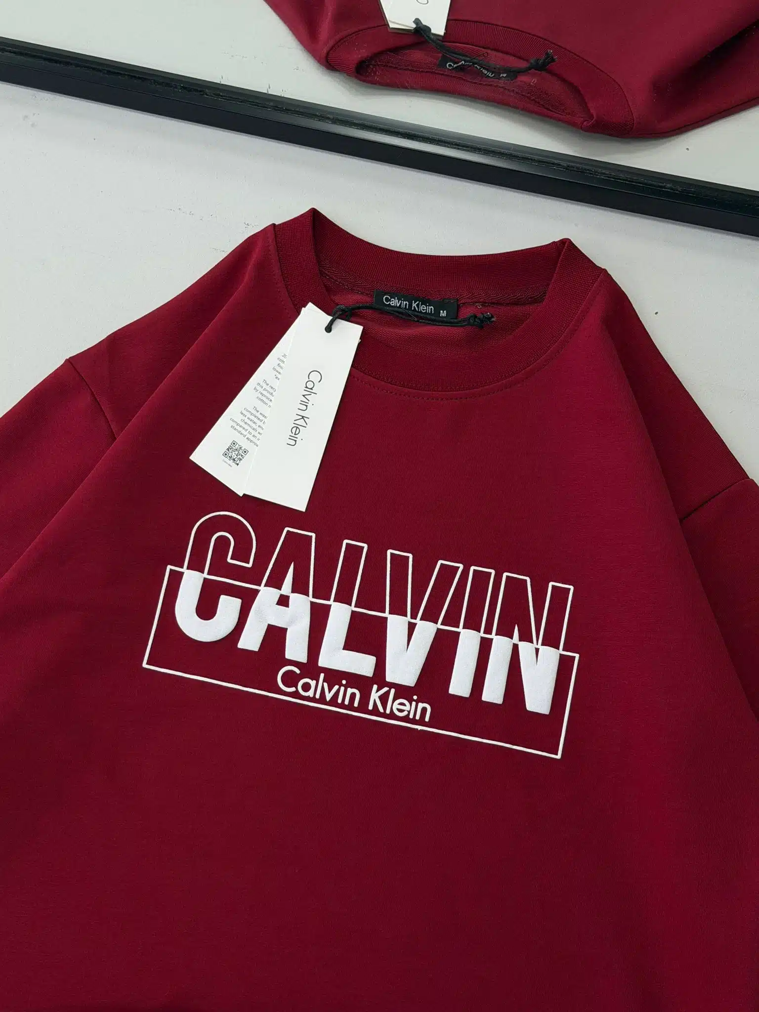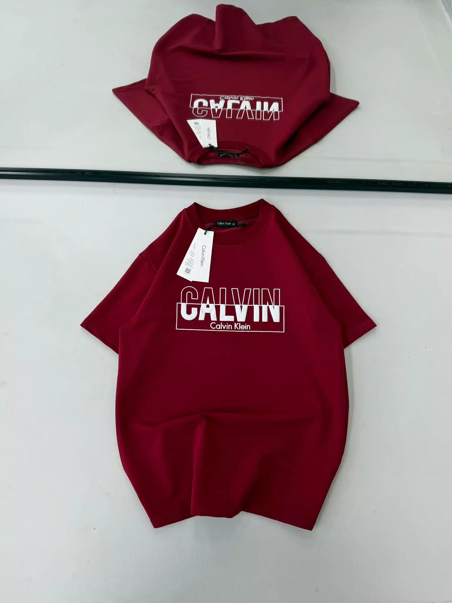 CK Kabartma Baskı Detaylı Bisiklet Yaka Tshirt – Bordo