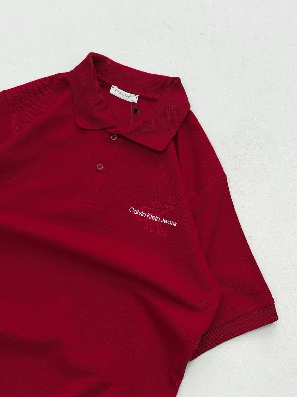 CK Nakış Detaylı Polo Yaka Tshirt – Bordo