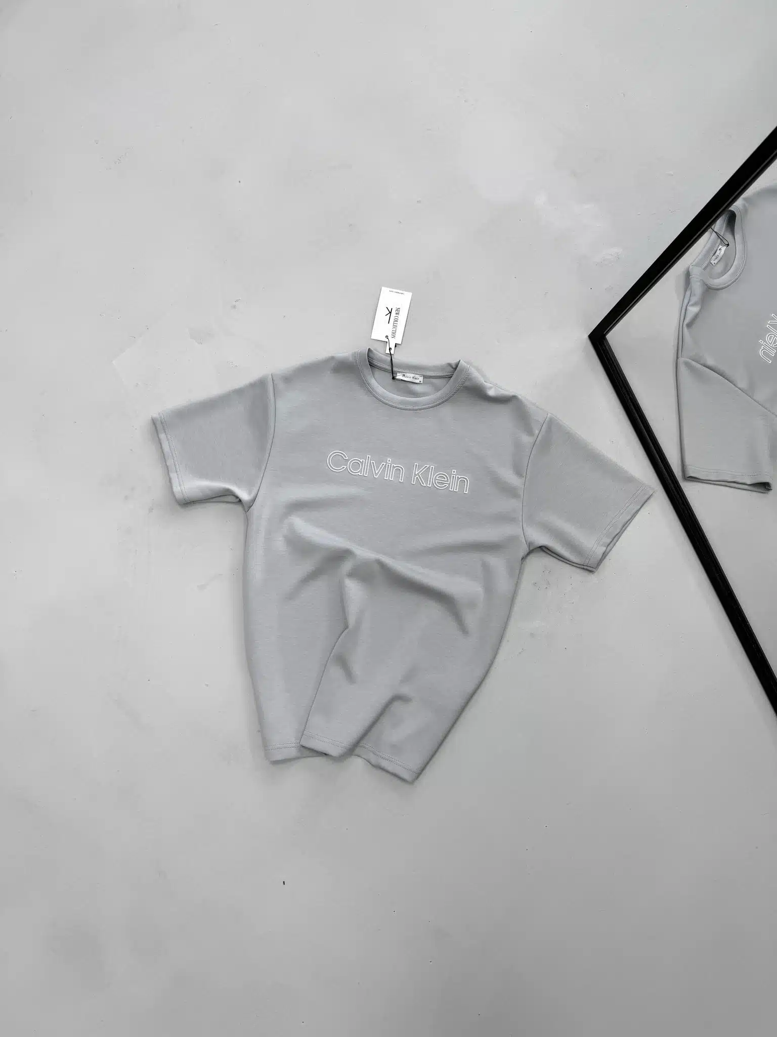 CK Premium Enjeksiyon Baskılı Bisiklet Yaka Tshirt-Gri