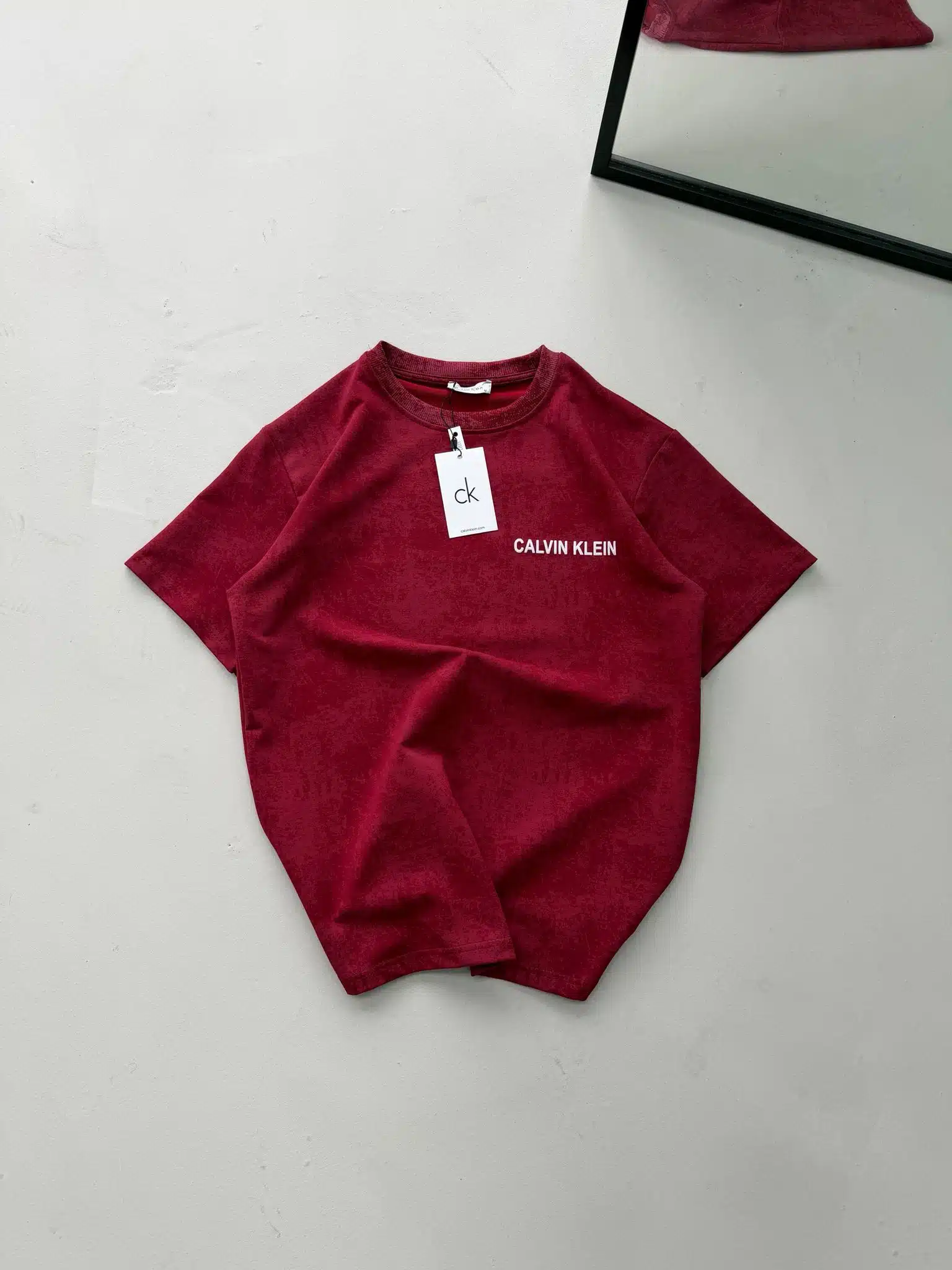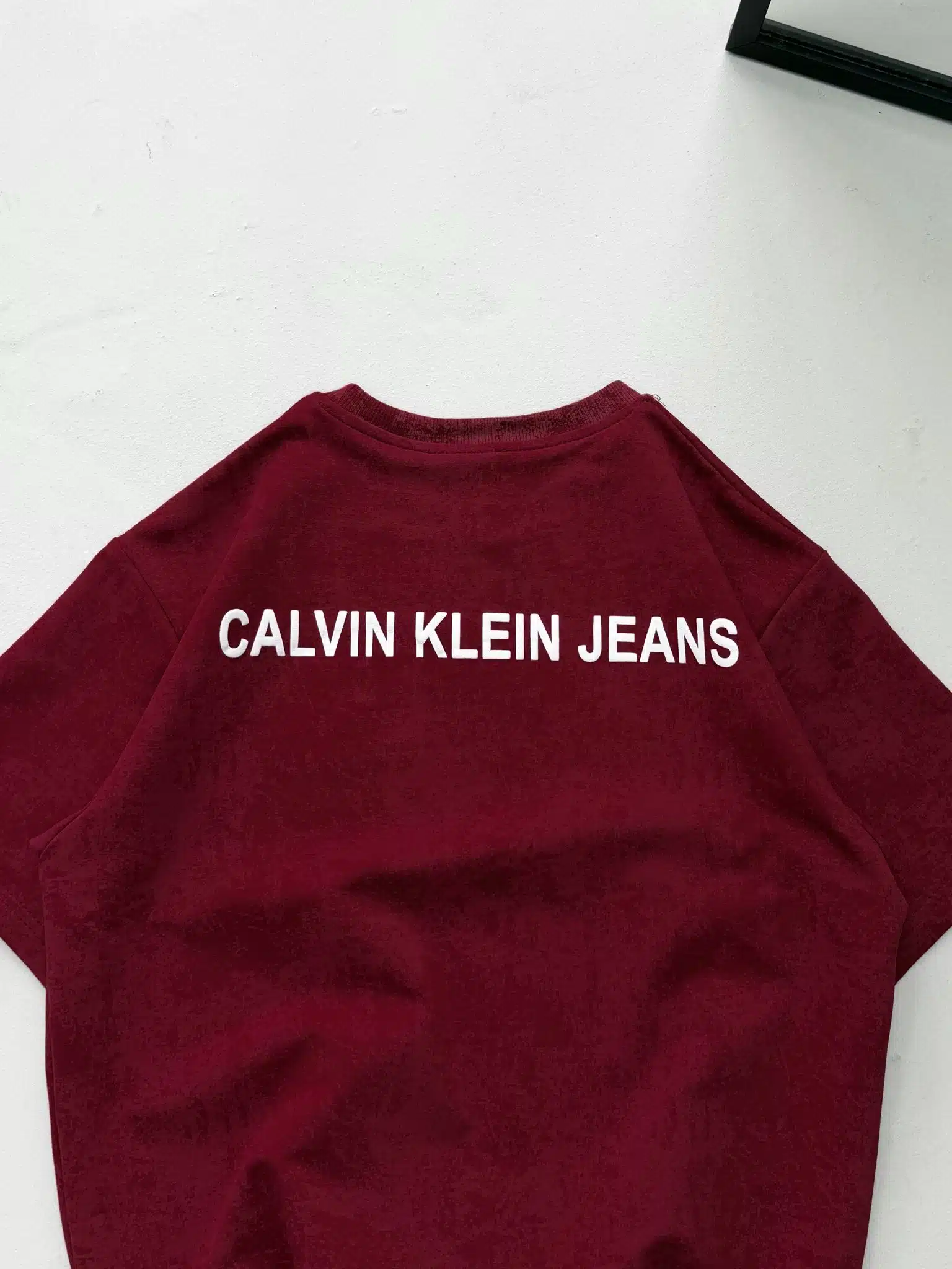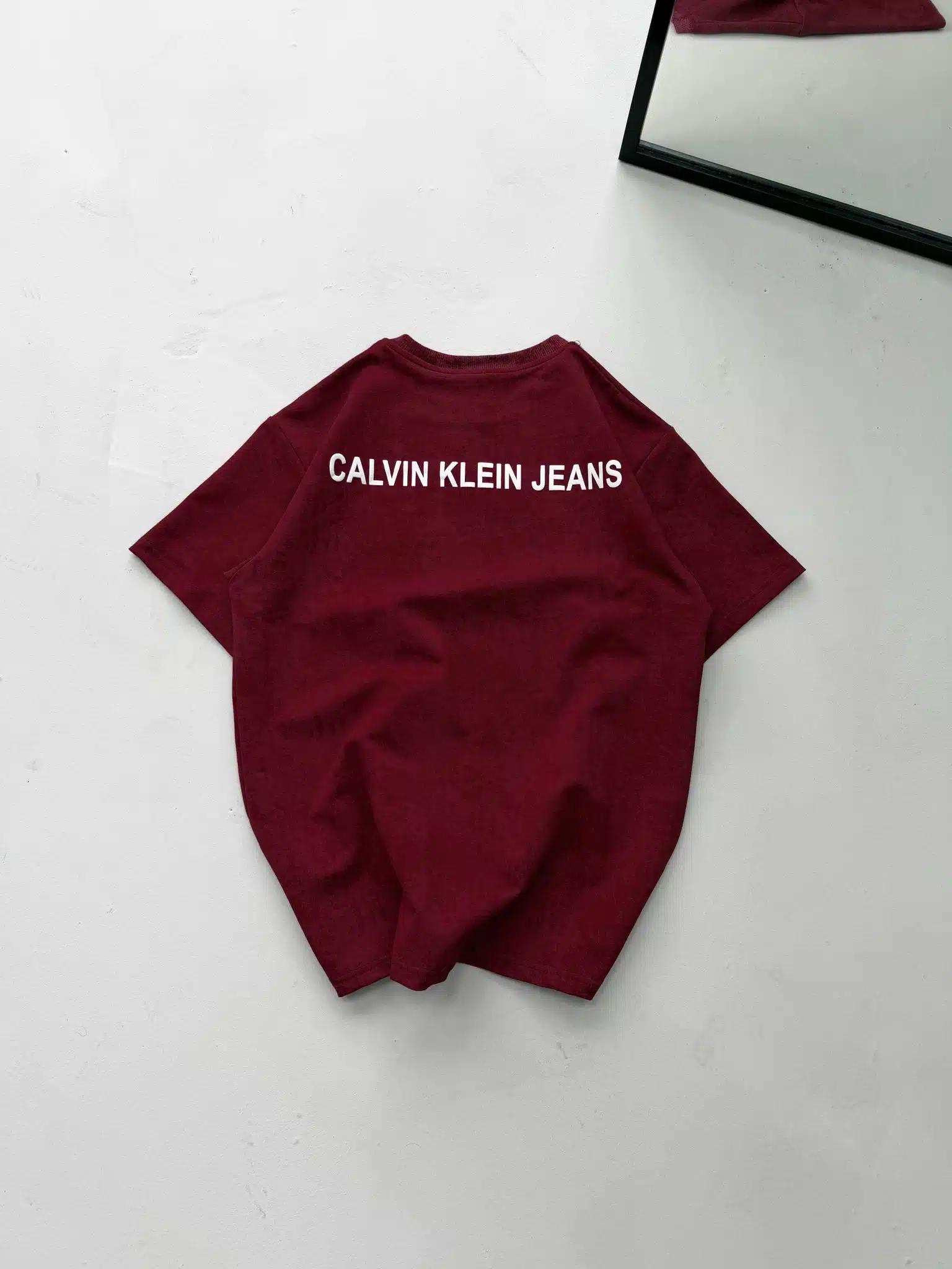 CK Sırt Baskılı Yıkamalı Tshirt -Bordo