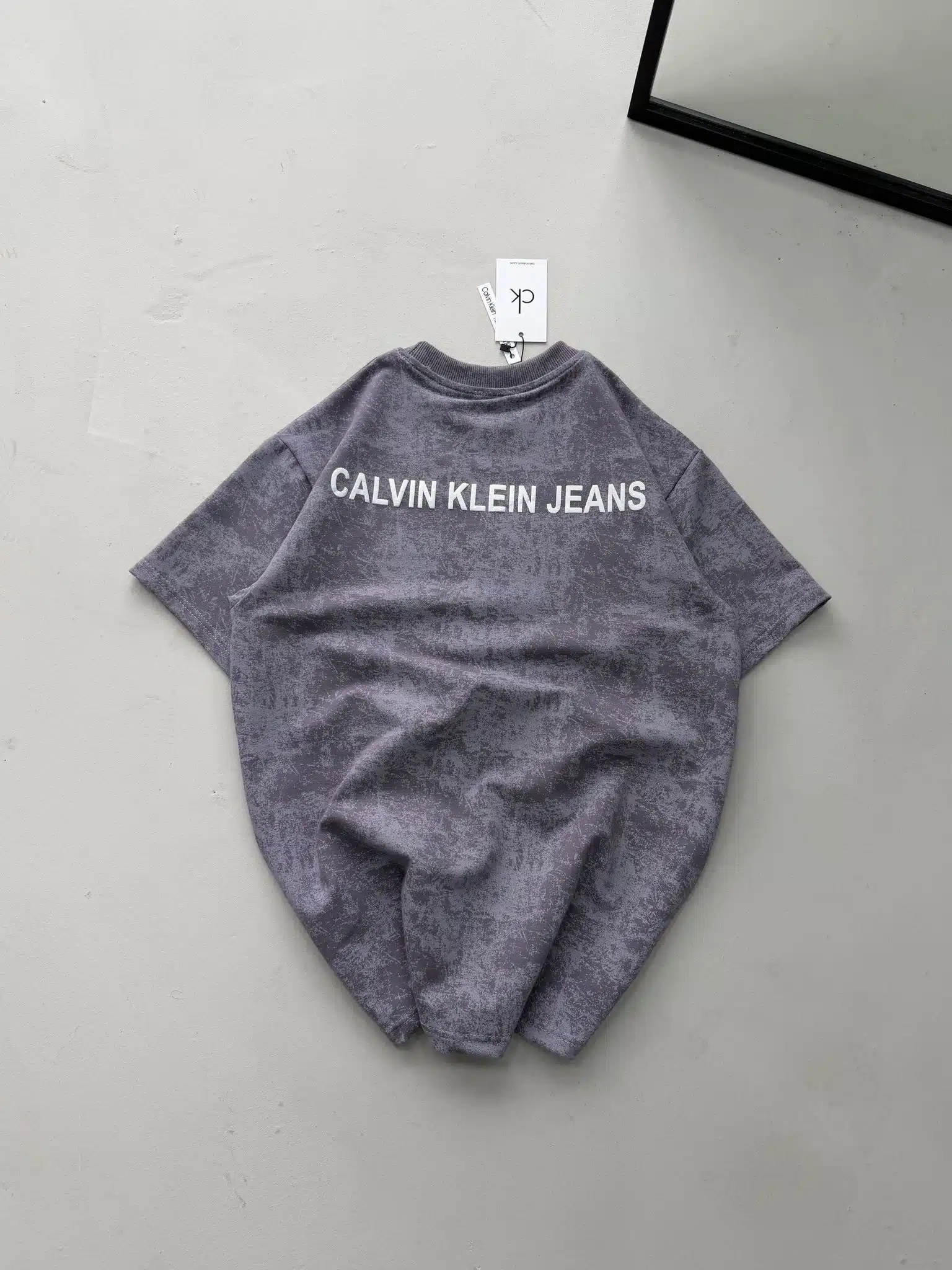 CK Sırt Baskılı Yıkamalı Tshirt -Gri