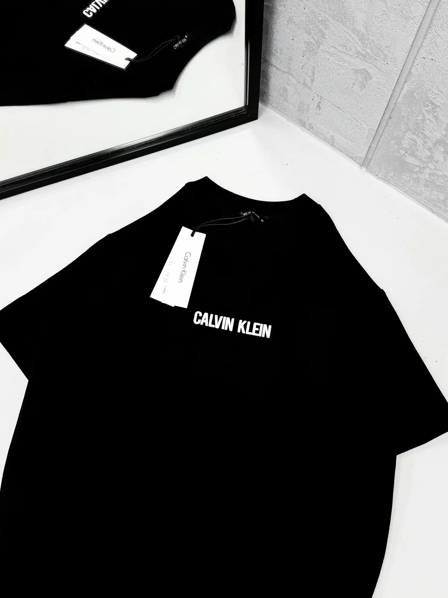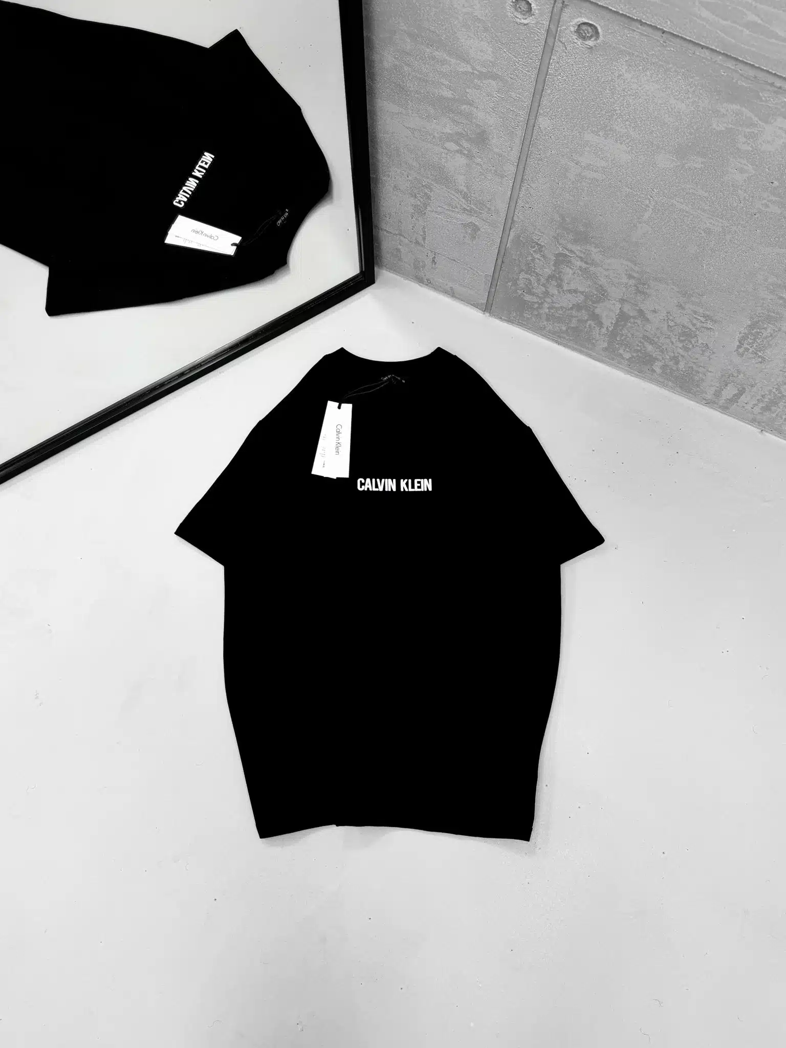 CK Sırt Kabartma Baskı Detaylı Bisiklet Yaka Tshirt – Siyah