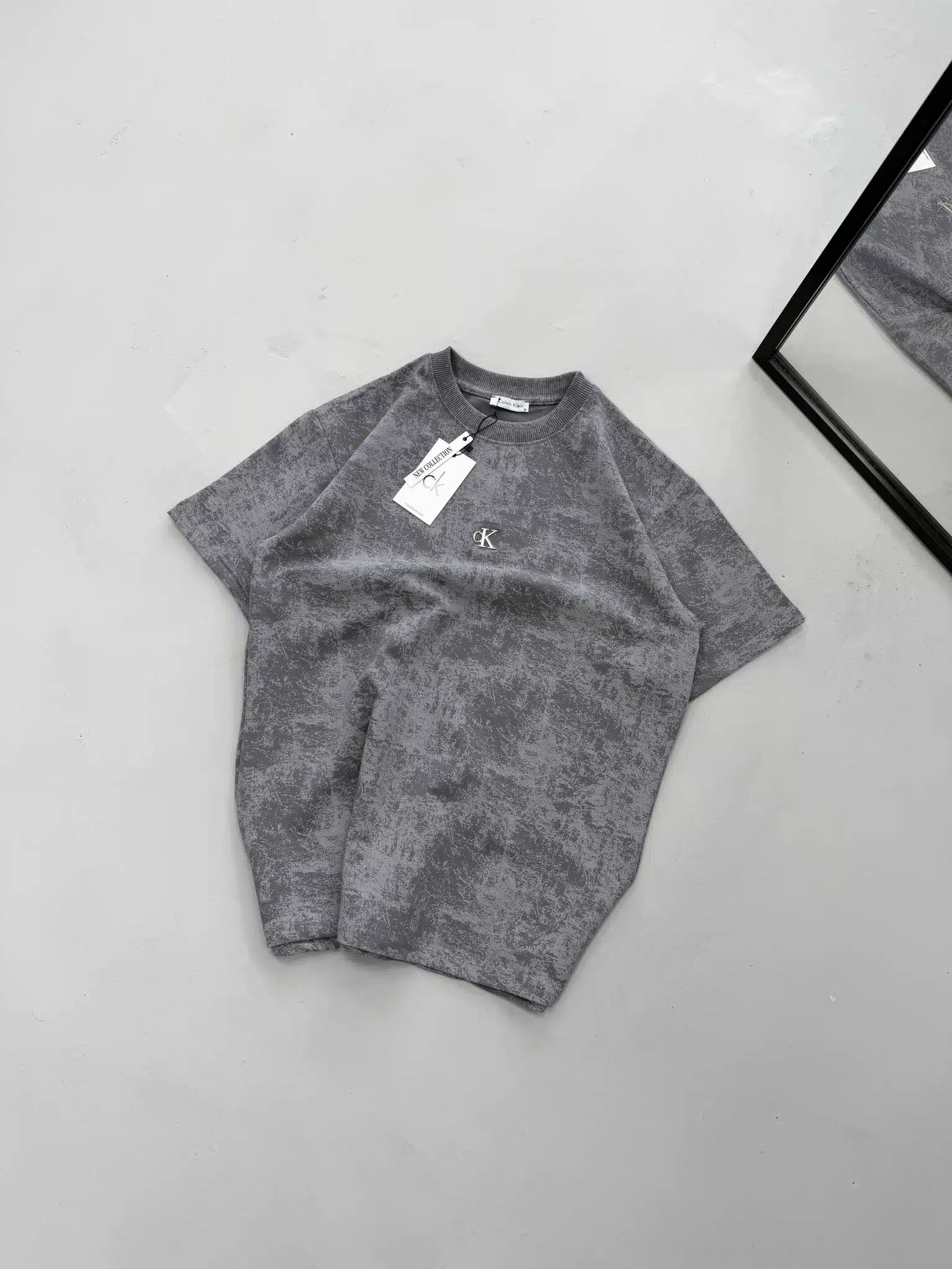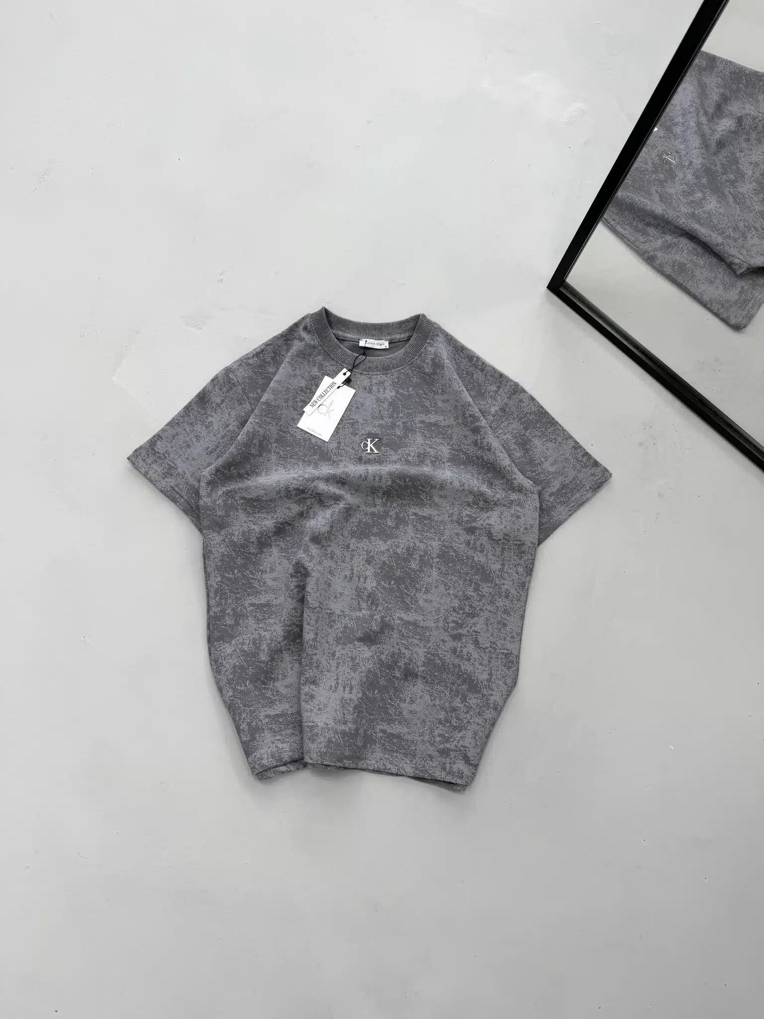 CK Yıkamalı Çelik Arma Bisiklet Yaka Tshirt – Gri