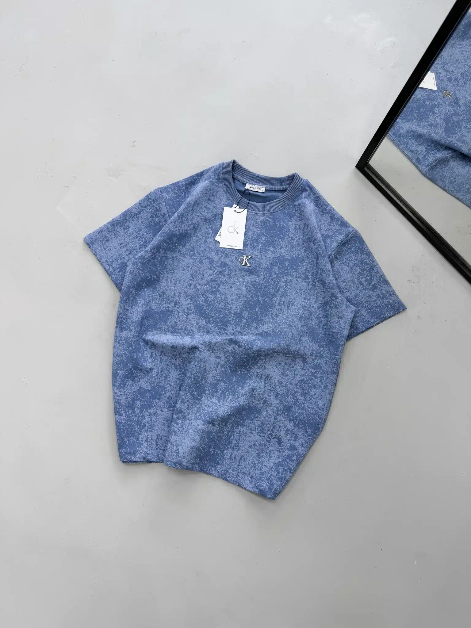 CK Yıkamalı Çelik Arma Bisiklet Yaka Tshirt – Mavi
