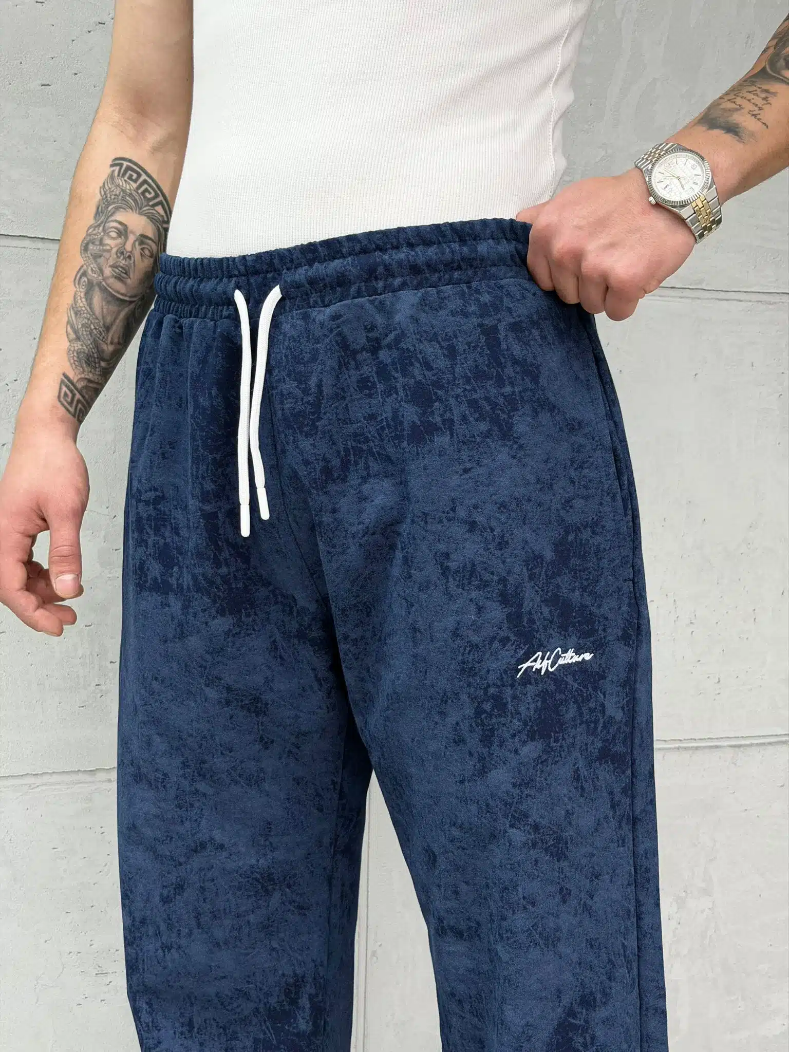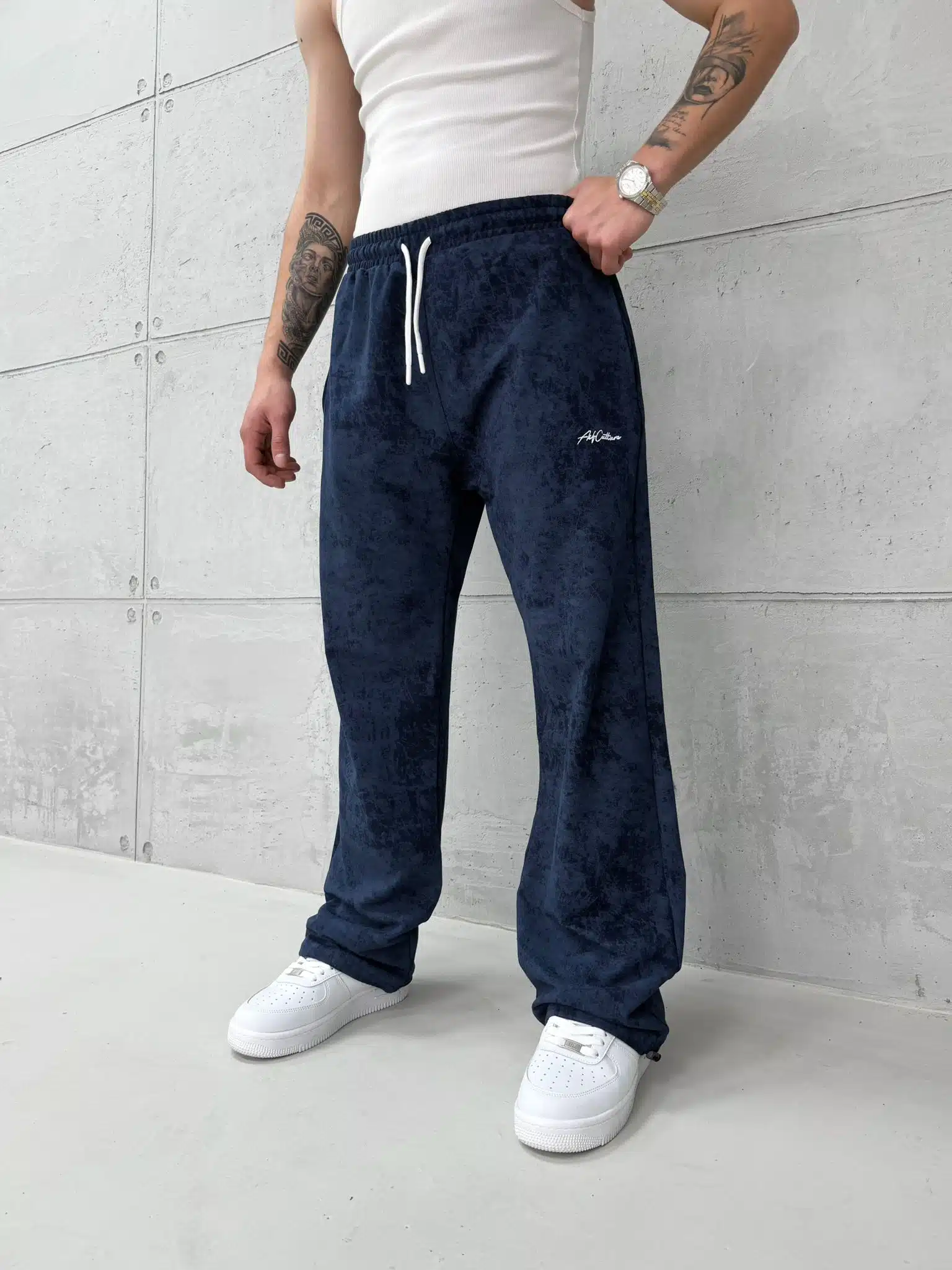 CLTR Premium Nakış Detaylı Yıkamalı Stoper Paça Baggy Eşofman – İndigo