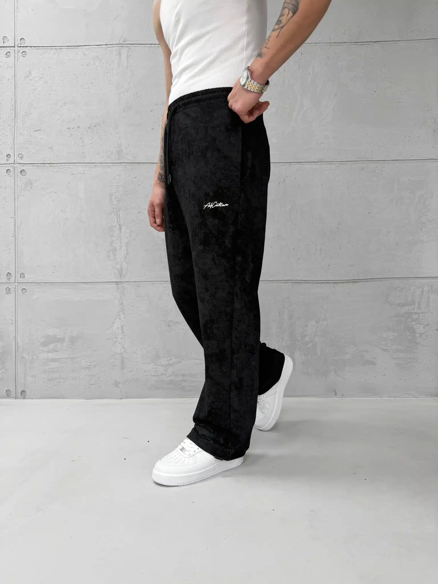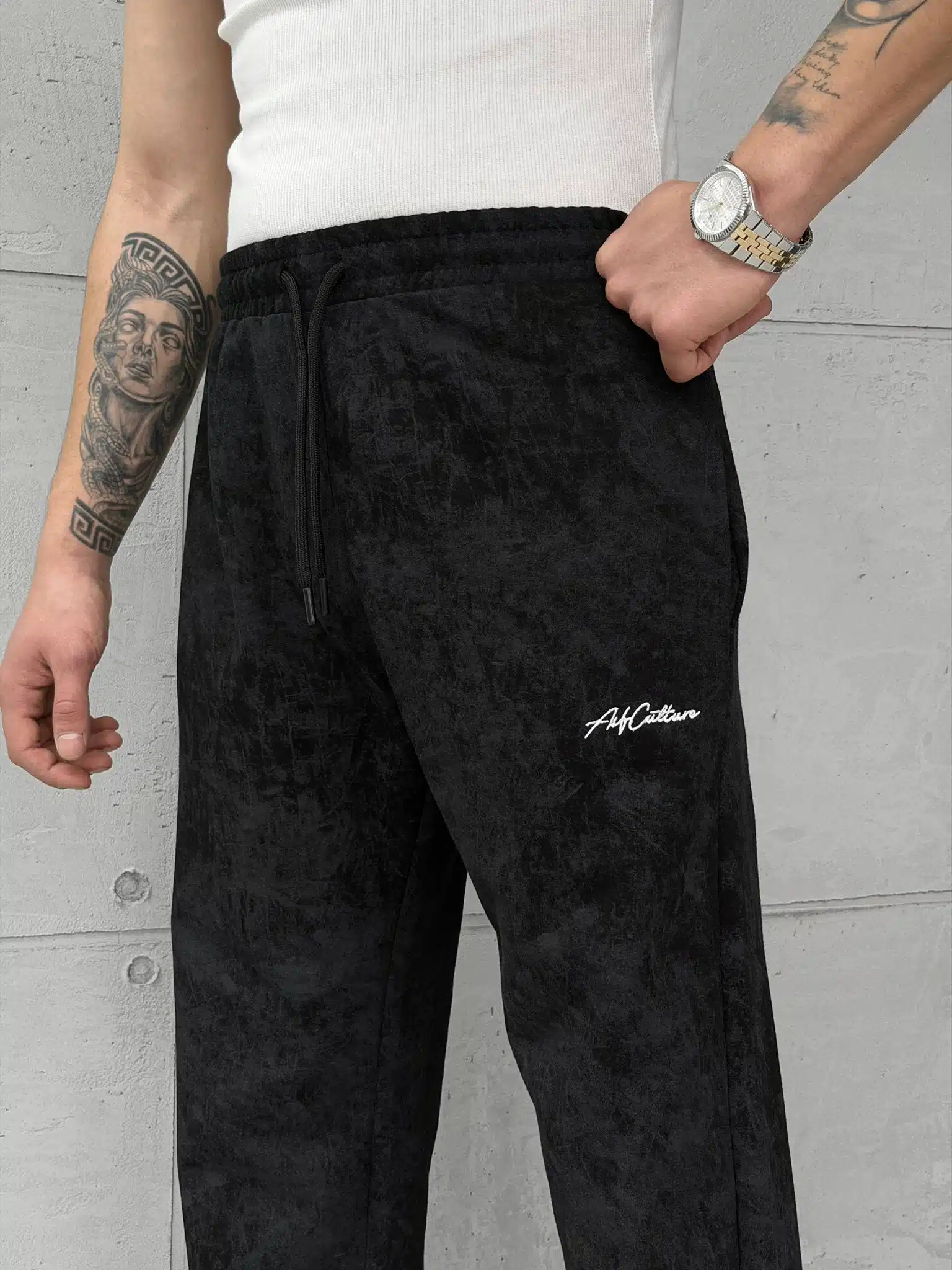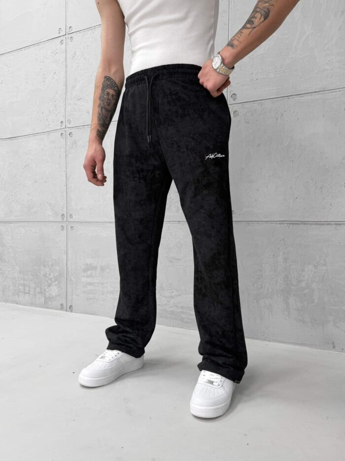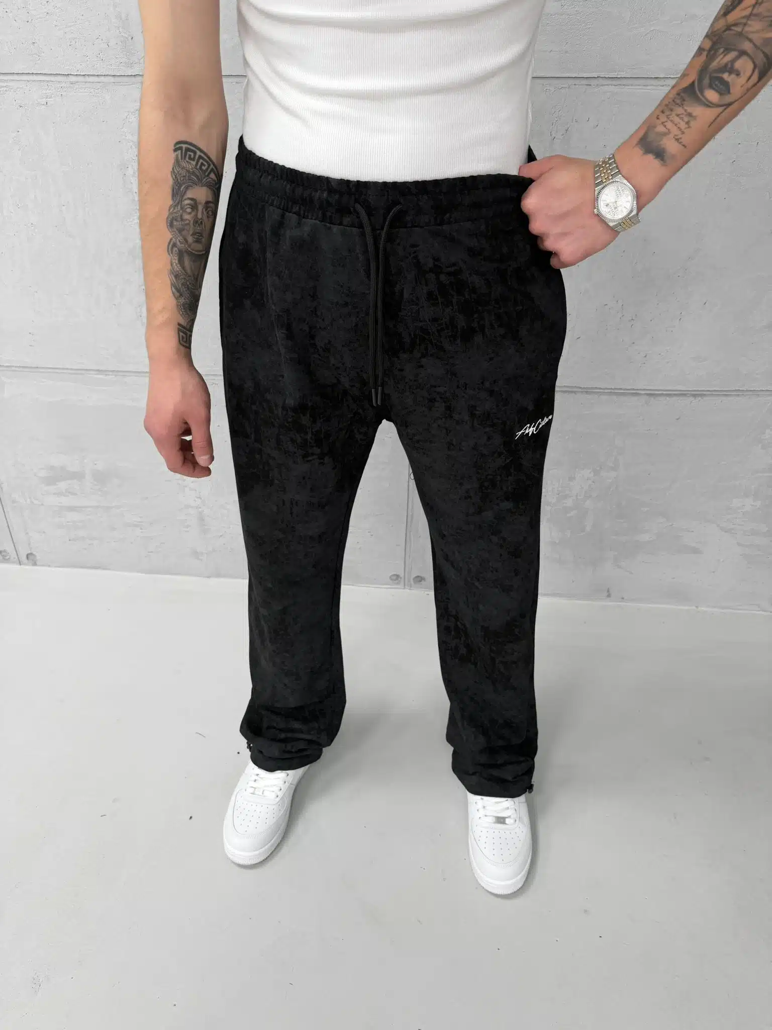 CLTR Premium Nakış Detaylı Yıkamalı Stoper Paça Baggy Eşofman – Siyah