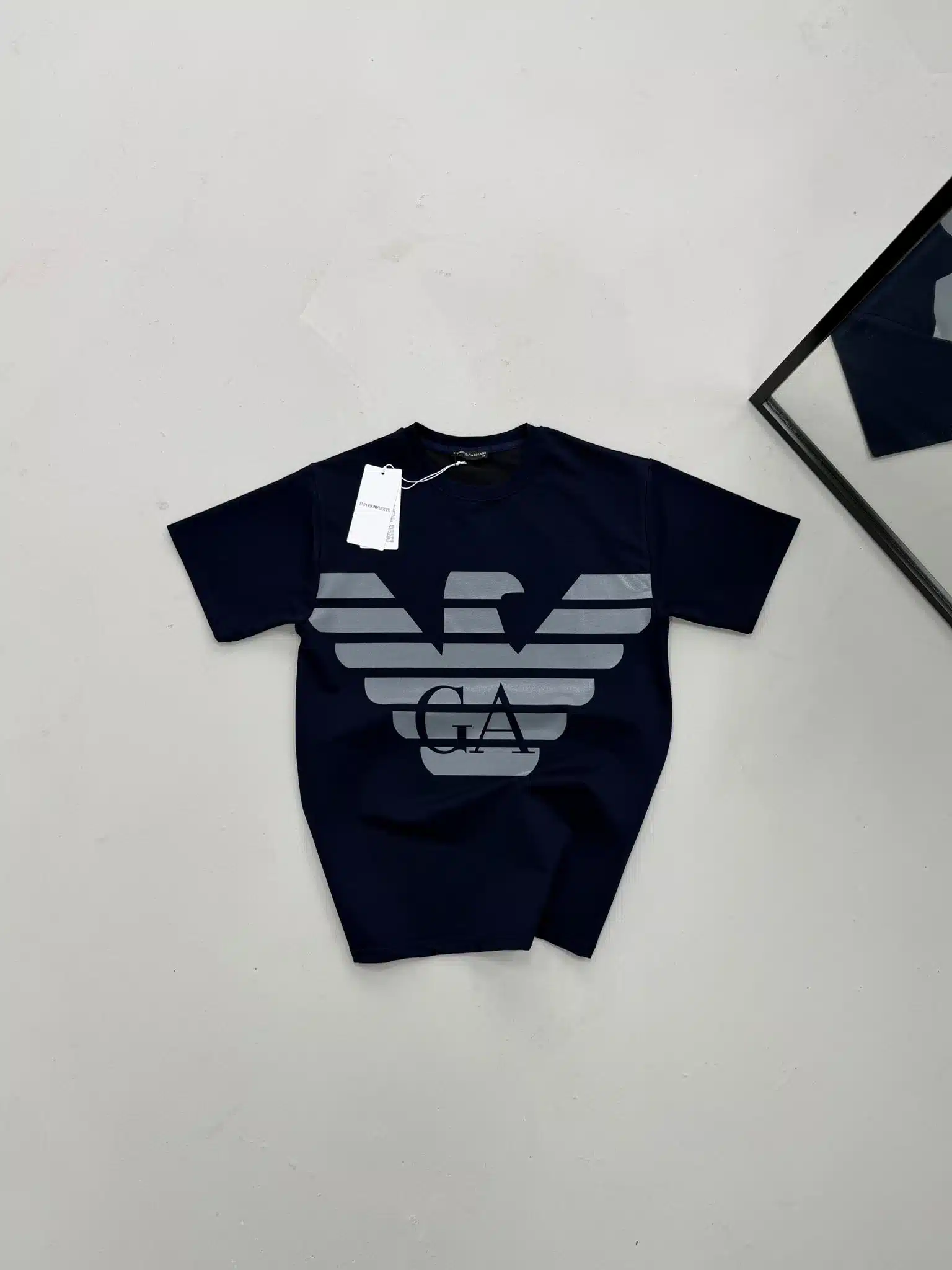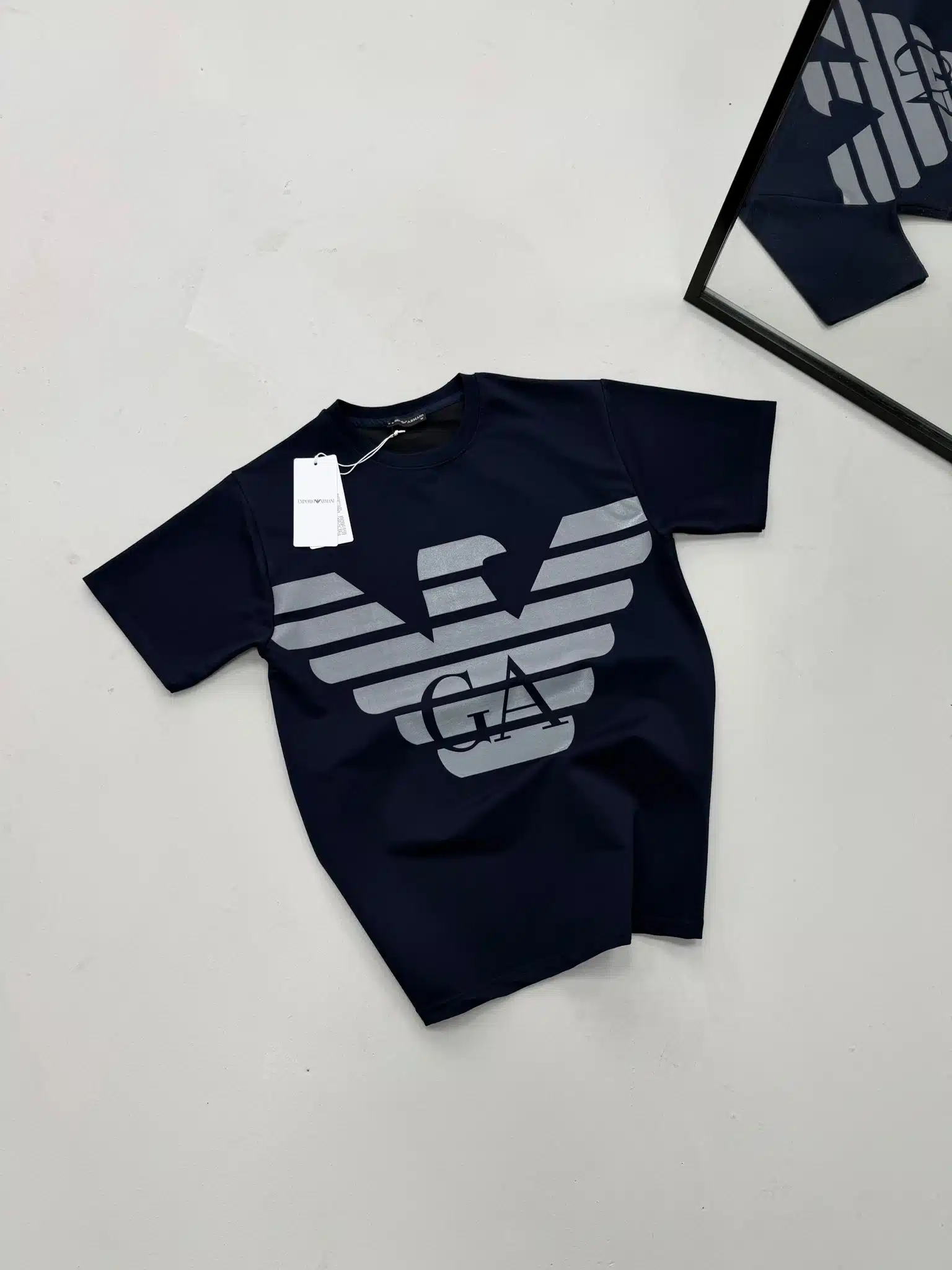EA7 Premium Baskılı Bisiklet Yaka Tshirt-Lacivert