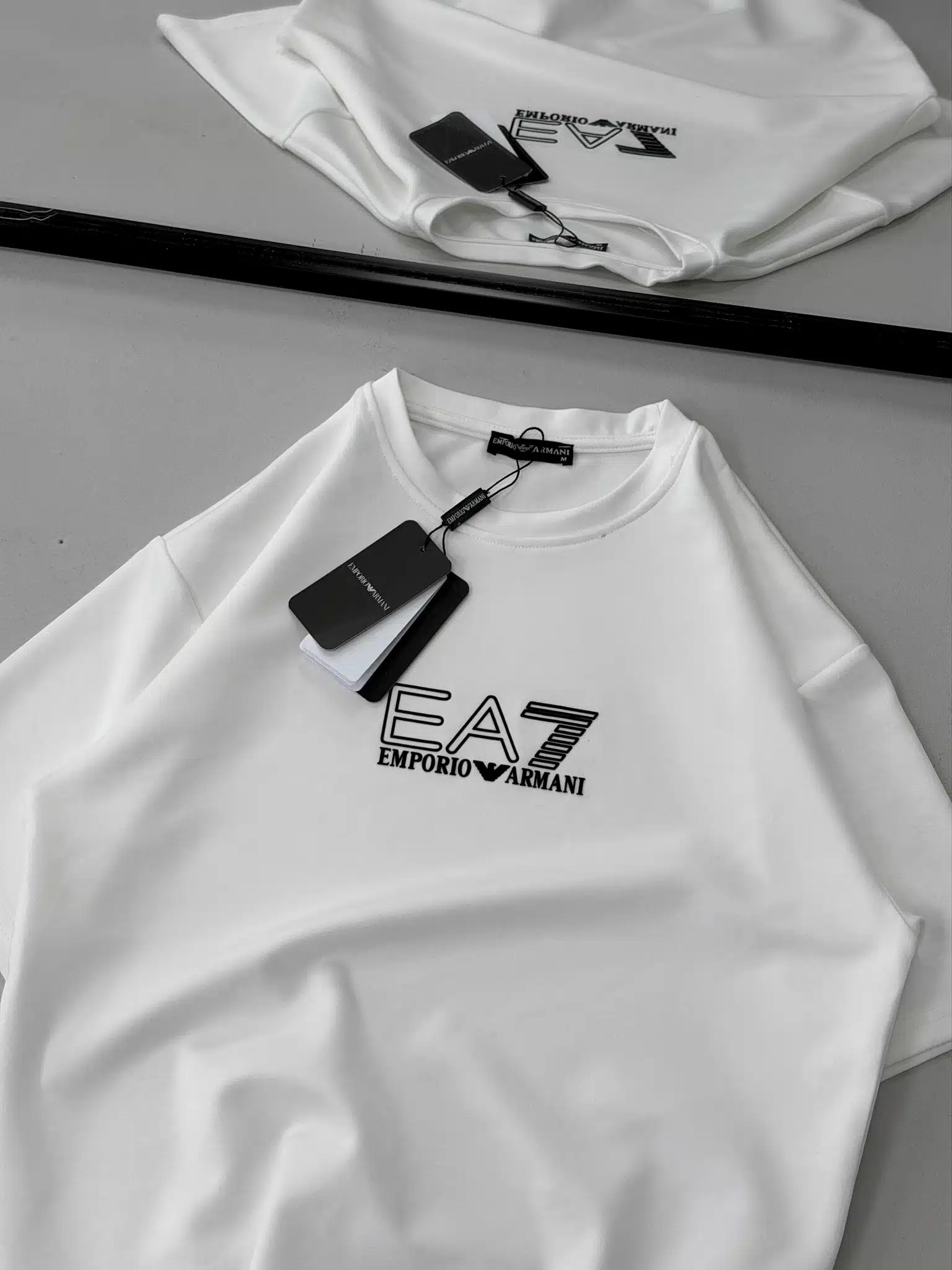 EA7 Enjeksiyon Baskı Detaylı Bisiklet Yaka Tshirt – Beyaz