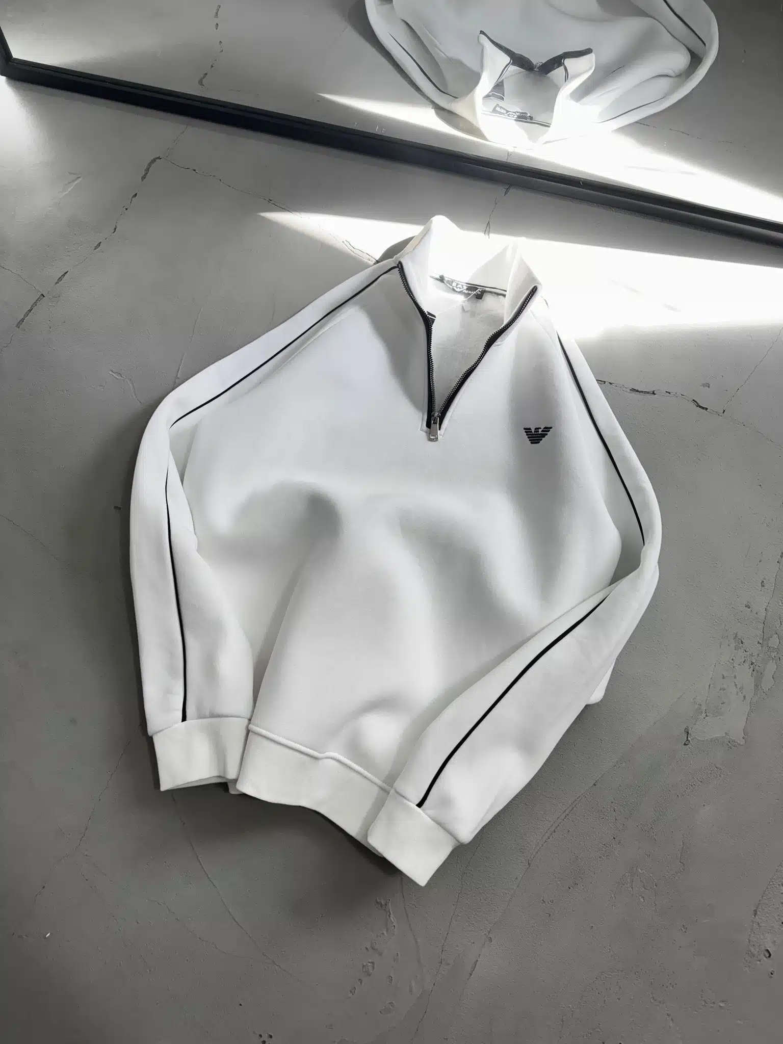 EA7 Nakışlı Üç İplik Yarım Fermuarlı Sweatshirt – Beyaz