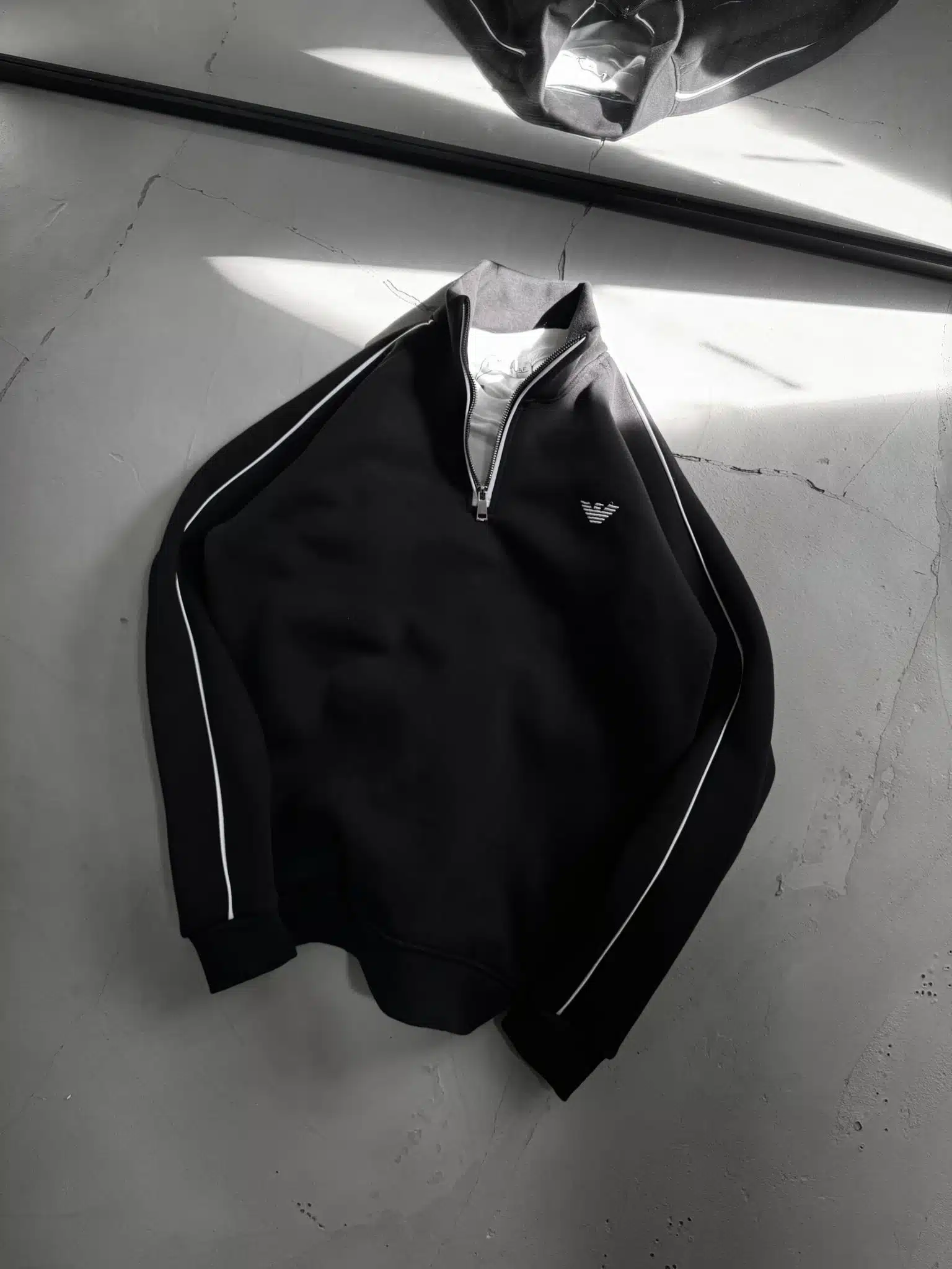 EA7 Nakışlı Üç İplik Yarım Fermuarlı Sweatshirt – Siyah