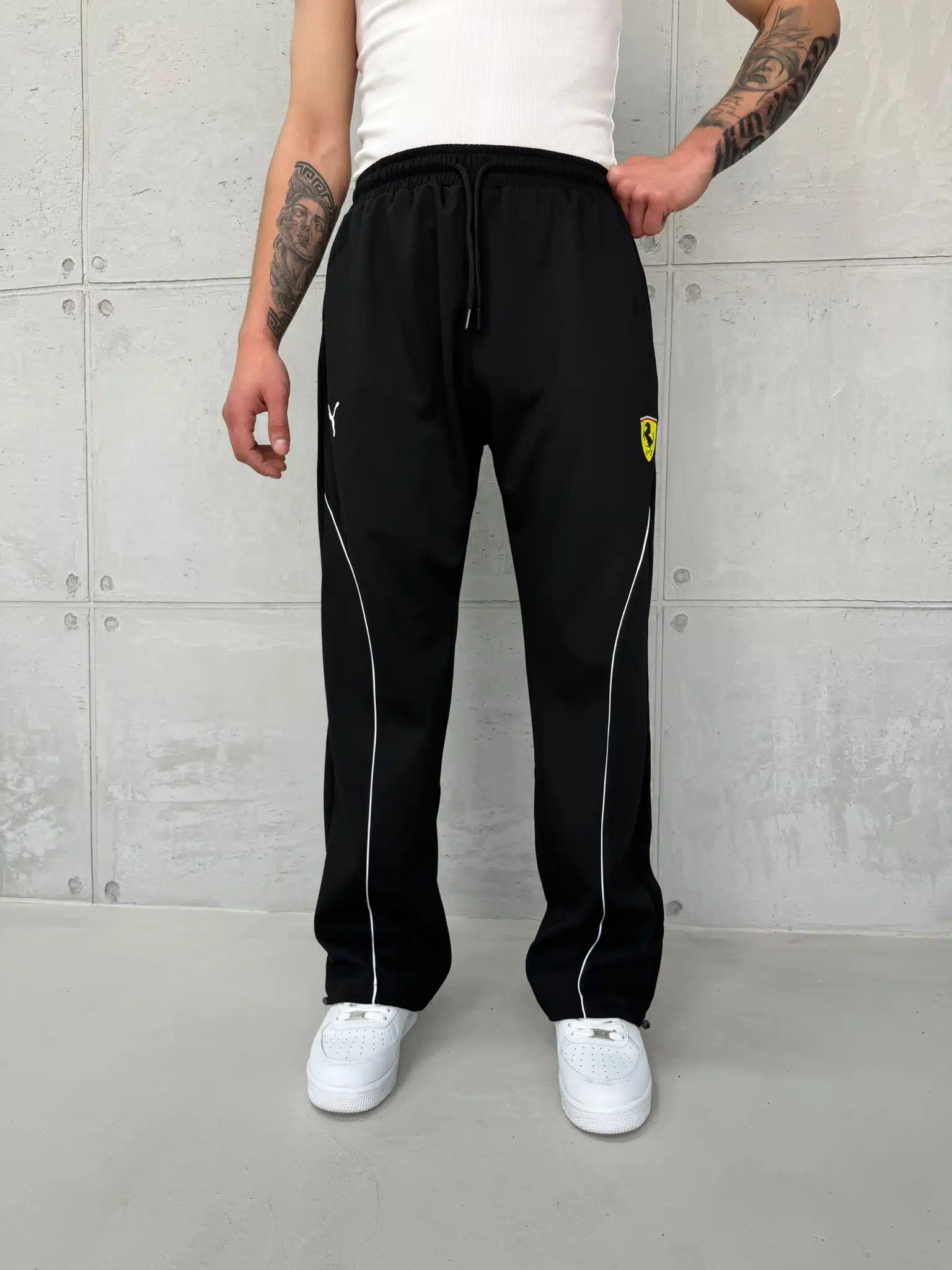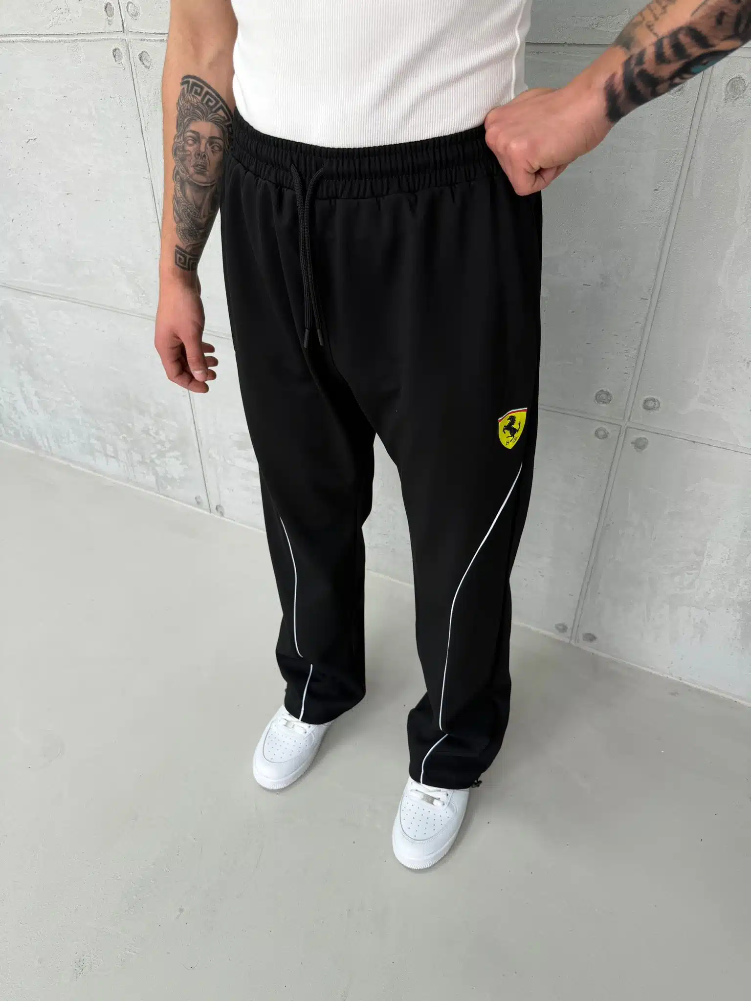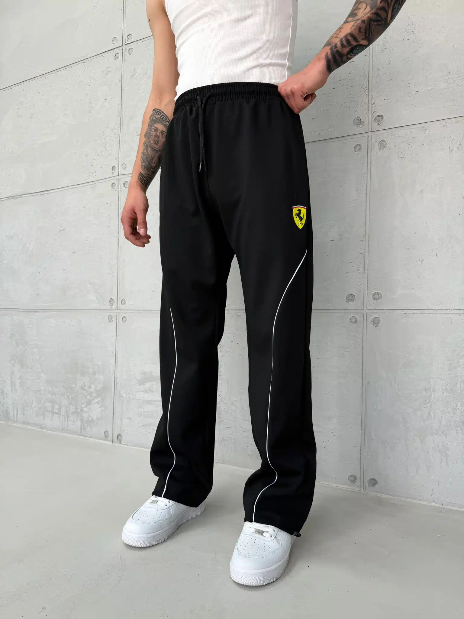 FR Logolu Yarım Şeritli Stoper Paça Baggy Eşofman – Siyah