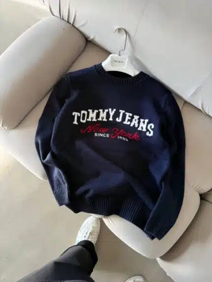 GC İşlemeli Premium Örgü Triko Kazak – Lacivert